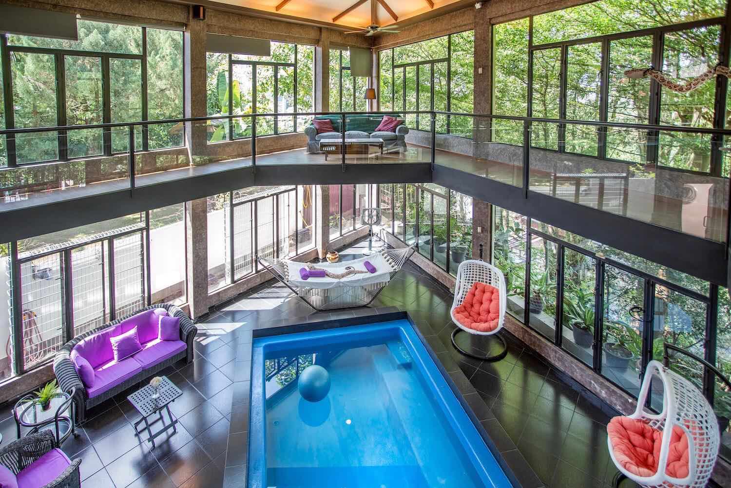 If you’re looking to travel to Malaysia in a large group, there is a huge glass villa that can house up to 12 adults, and it even has a private indoor pool for you to enjoy!