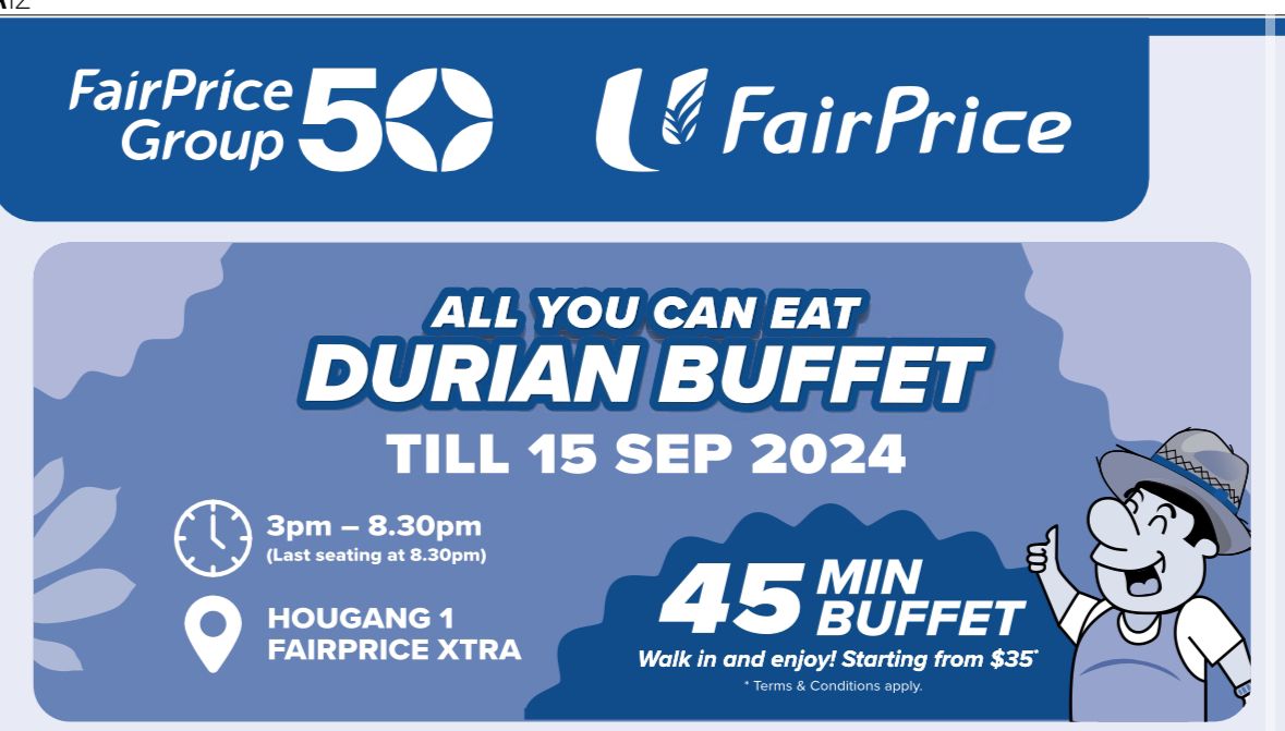 Durian season isn’t over yet, and if you missed out on FairPrice’s last durian buffet at AMK Hub back in July, you might want to save the date for this new one happening at FairPrice Xtra Hougang 1! Enjoy all-you-can-eat servings of freshly-dehusked durian starting from $35 per person, and it’s available everyday from now till 15th September 2024!