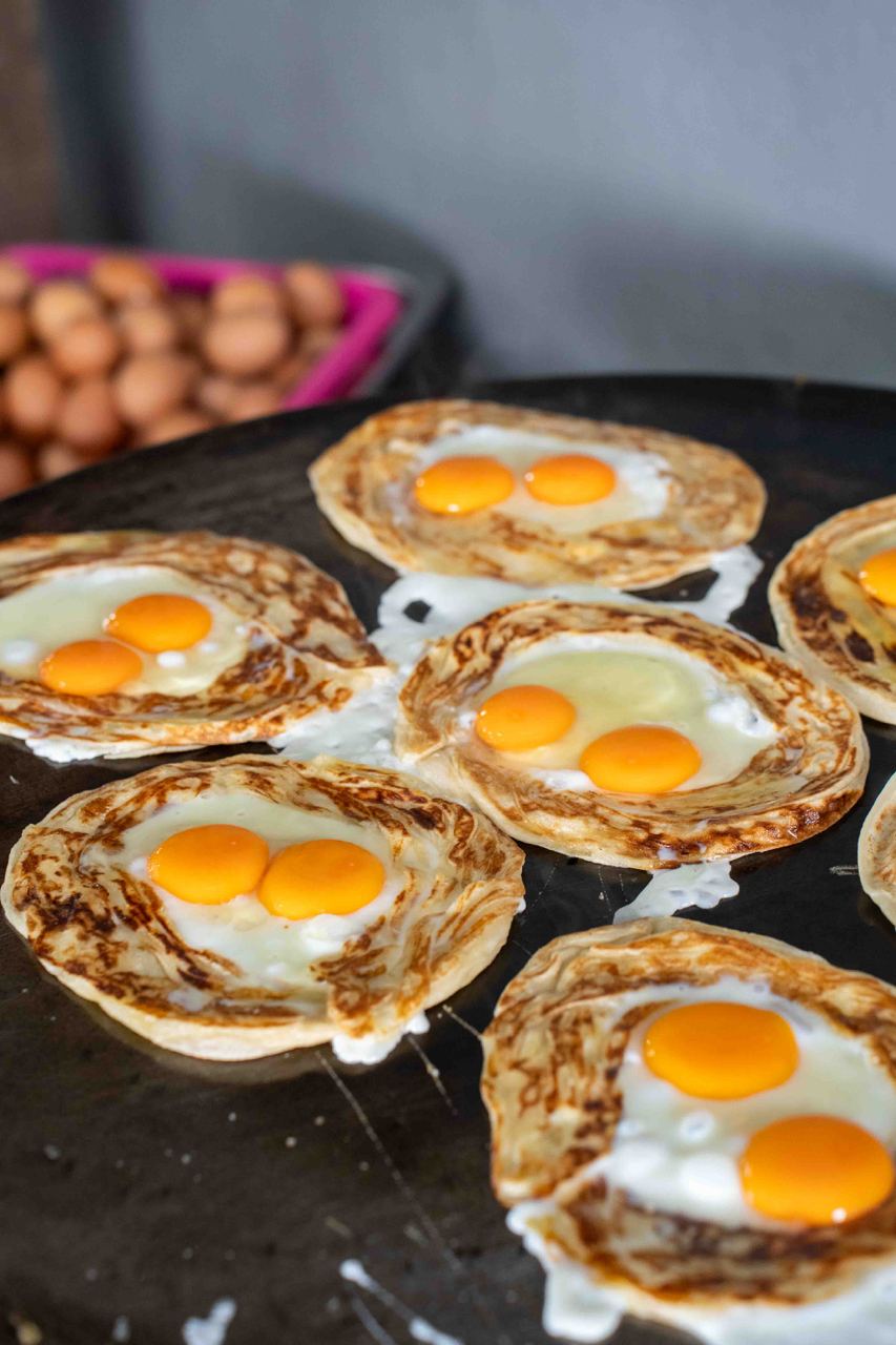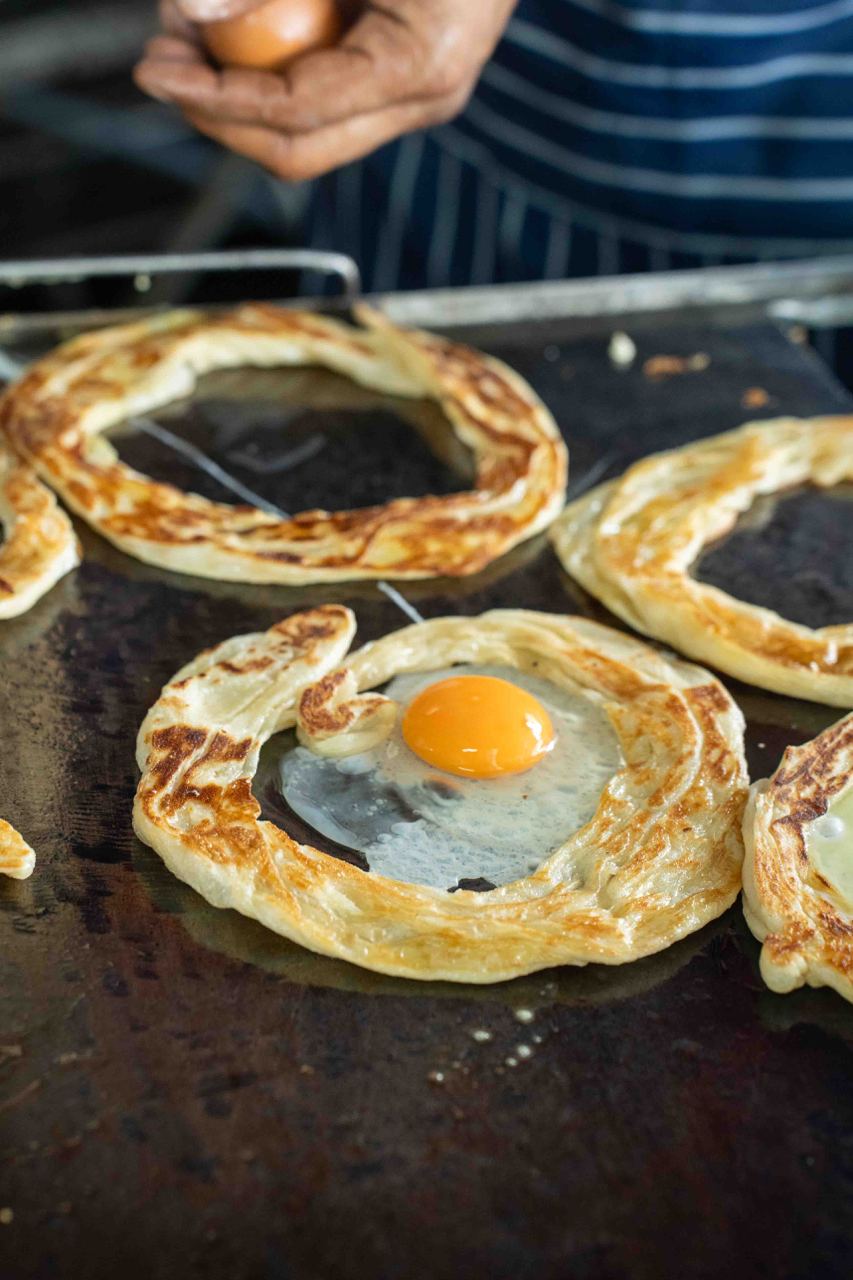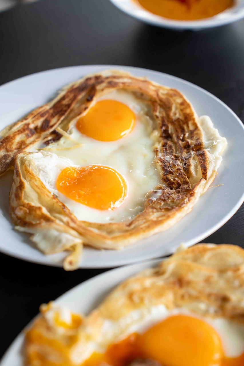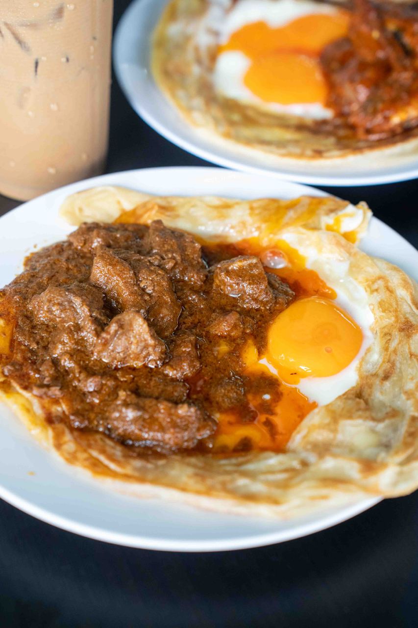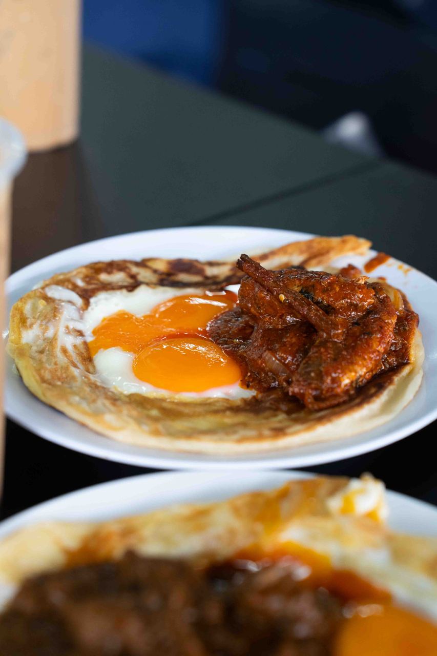 Dapo’ Khaleeda is located just 10 minutes away from the checkpoint, and they’re known for their popular “Sarang Burung” prata varieties from just RM 6 (~$1.70 SGD)! “Sarang Burung” translates to “bird’s nest”, and instead of your usual “flat” pratas, their version features a hole in the middle—a “nest” if you will—to be filled by 2 perfectly runny sunny side eggs.