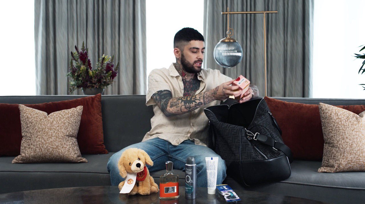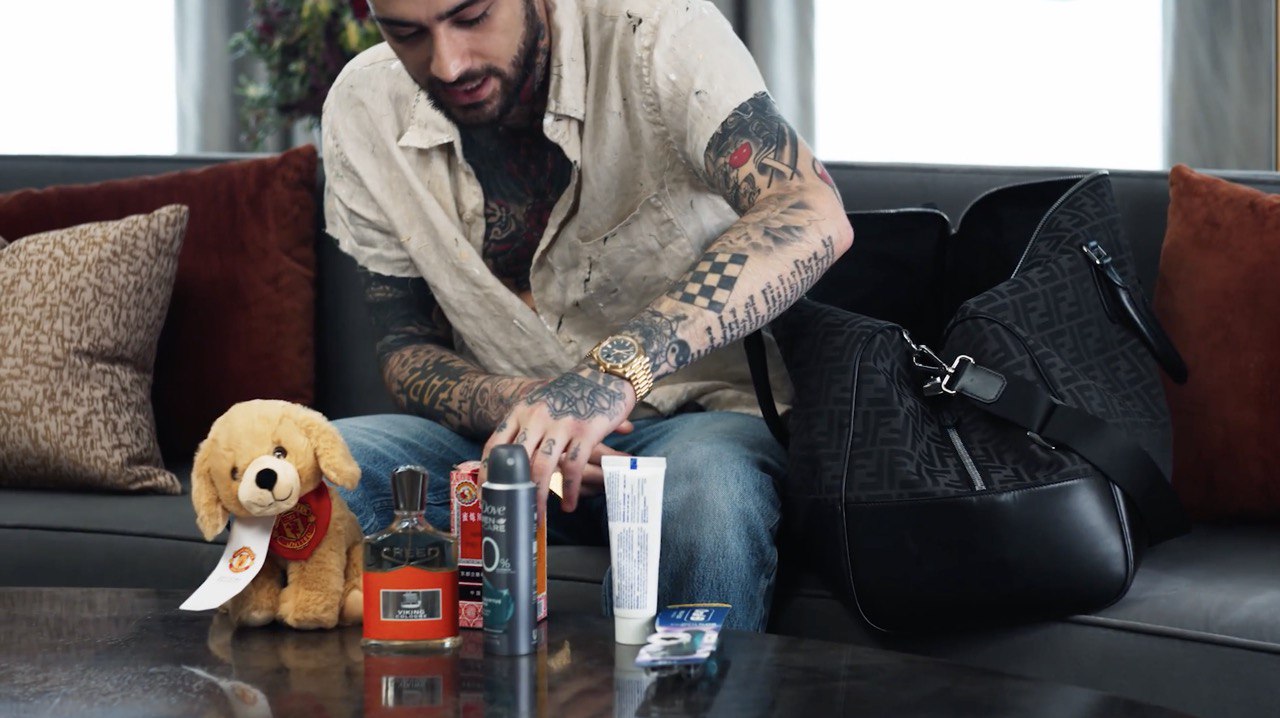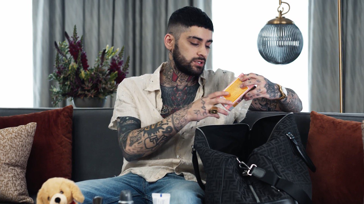 Vogue Britain recently released an ‘In The Bag’ video with Zayn Malik, where the British musician reveals his weekend bag must-haves. At first the items in his bag seemed normal enough—a teddy bear, deodorant, toothbrush, fragrance—until he whipped out an entire bottle of pipagao! Imagine our surprise seeing the familiar red and black bottle pulled out of Zayn’s everyday bag—and it’s a Fendi bag too.