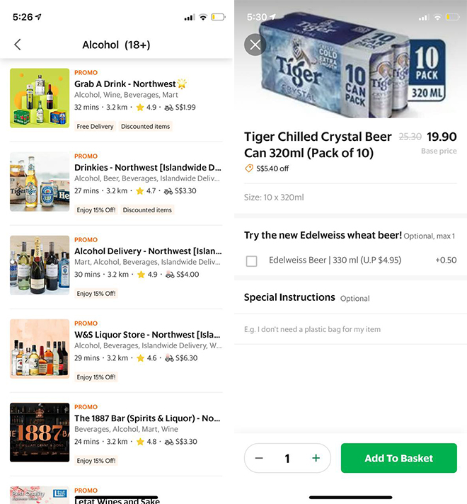 When the PandaMart app is down, GrabMart works just as good. Showcasing a multitude of alcohol delivery services all-in-one app, GrabMart specially curates each list to your convenience based on location, to ensure all drinks reach you in the fastest time possible.