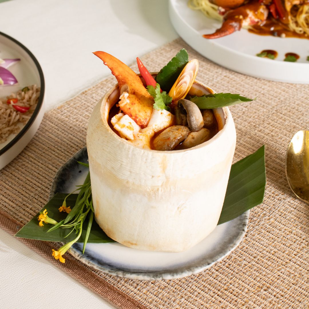 Sarai Fine Thai is an elegant Thai restaurant known for their Thai buffet, where you get to feast on a curated selection of over 20 authentic Thai dishes, including seafood, meats, curries, soups, salads, noodles and more. Some highlights you can expect from the à la carte buffet menu include Stir-Fried Mixed Seafood, Golden-Fried Fish Fillet, Black Pepper Beef, Southern-Style Pork Belly Stew, Red Curry Duck Breast, Green Curry Chicken, Black Olive Fried Rice, Red Ruby, Mango Sticky Rice and more.