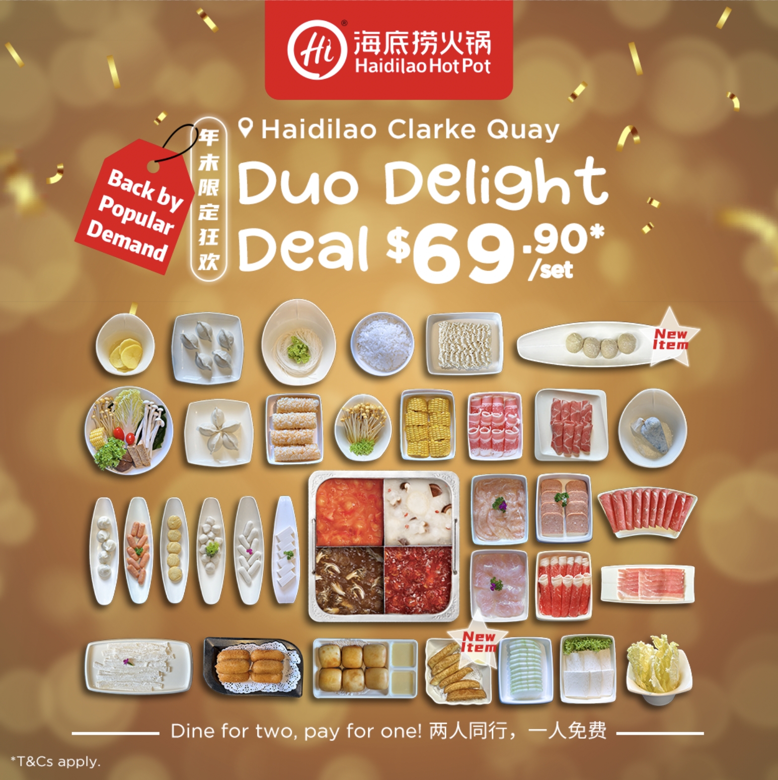 The 1-for-1 HDL “buffet” is available from now till 31st March 2024 at the Clarke Quay and Northshore Plaza (from 8th January 2024 onwards) outlets, with each outlet offering different menu items for the promotion. The Duo Delight Deal is available on Mondays to Fridays, 11.30am to 6pm, so don’t miss out on it this time! The promotion is only available for dine-in, with a dining limit of 2 hours. Note that the Duo Delight Deal price does not include condiment bar or beverage charges.