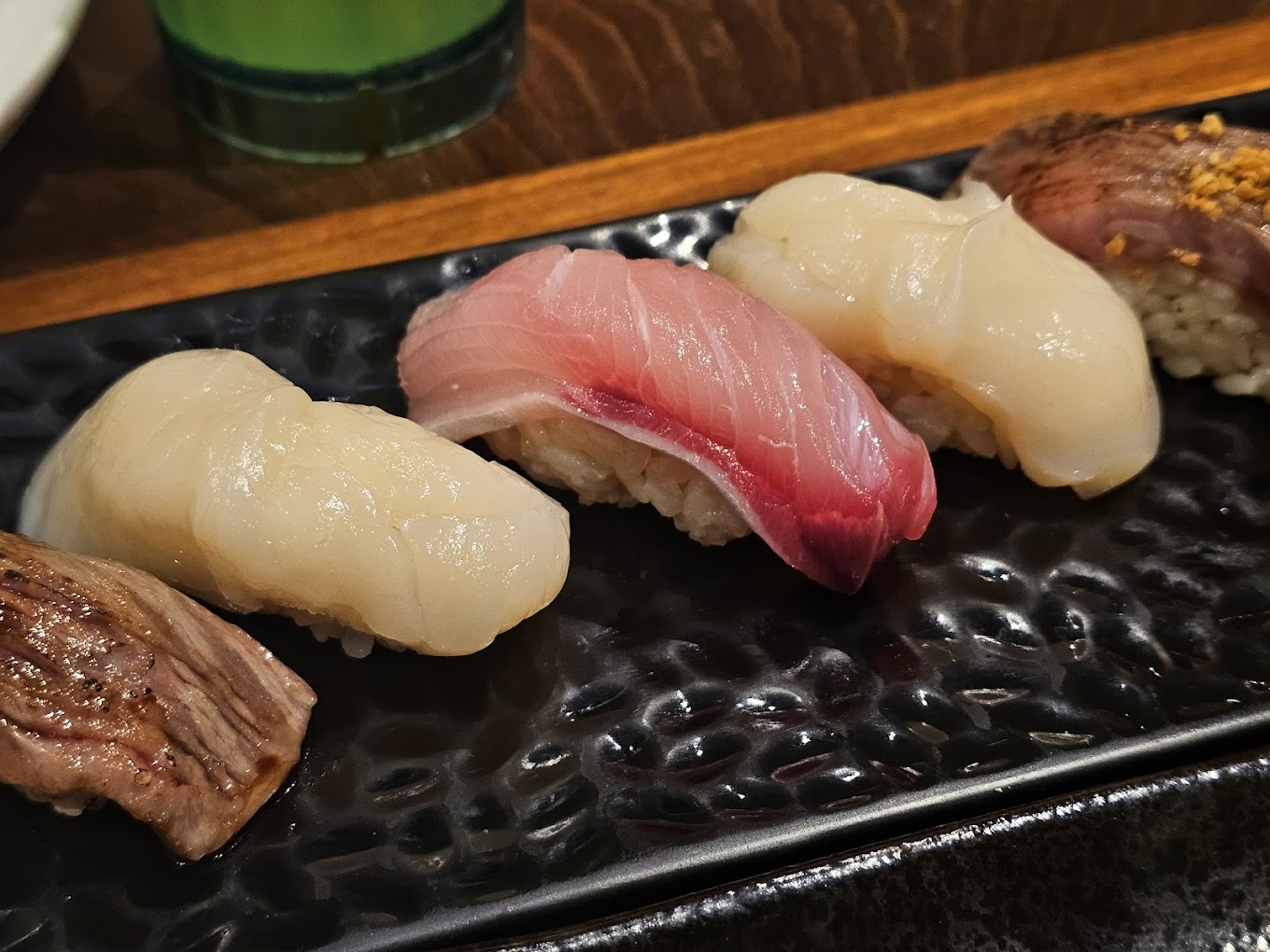 Their Aburi Omakase Set is great for those who aren’t a fan of raw fish, as the items in the course are either seared, torched or grilled. The omakase comes with 11 courses in total, including 9 pieces of seasonal aburi sush, 1 grilled seafood item and miso soup. Some items you might be served as part of the omakase include Sea Bream, Shiro Aji, Yellowtail, Chutoro, Swordfish and more.