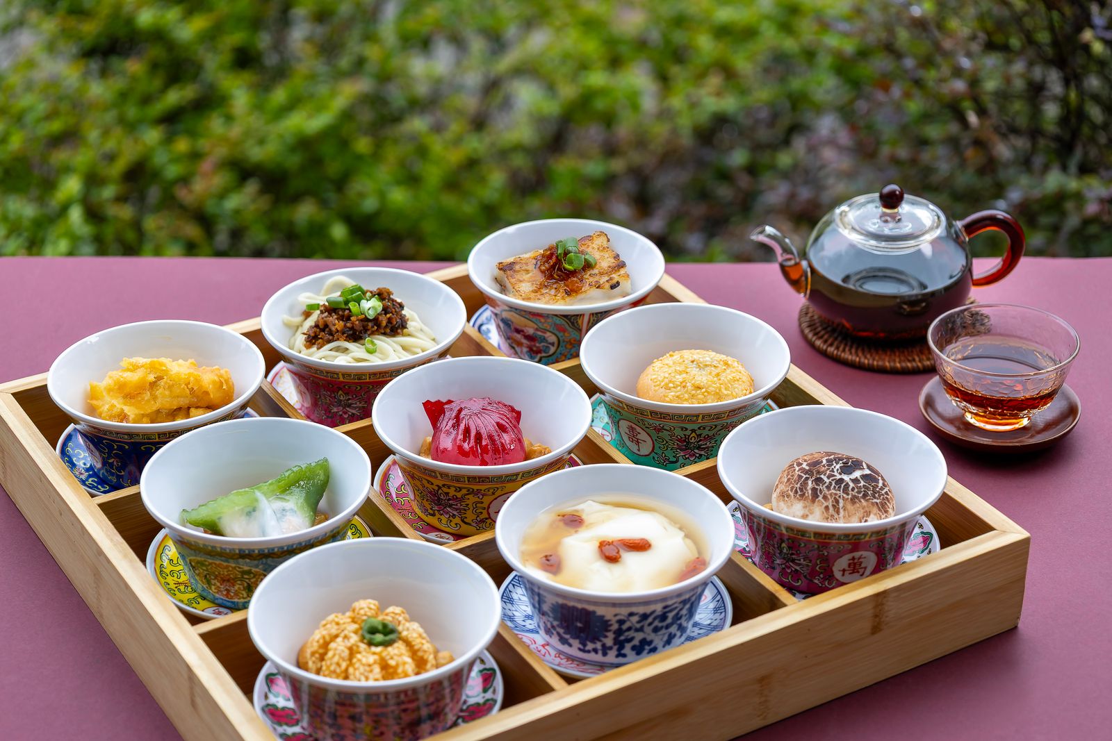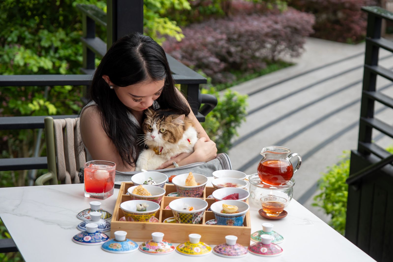 The one-of-a-kind Royal Imperial High Tea is served at Si Chuan Dou Hua’s alfresco area, perfect for sitting and lounging with your furbaby while enjoying the lush outdoors. The high tea set comes served in an oriental-inspired 9-grid wooden tray, with items displayed in colourful painted porcelain bowls. The high tea set features a selection of dim sum-style items, including Steamed Scallop Siew Mai, Steamed Prawn Dumpling, Deep-fried Prawn, Homemade Noodles Soup with Bean Curd, Dumplings in Chilli Oil, Seasonal Mugwort Glutinous Rice Cake, Chinese Rice Wine with Mini Glutinous Rice Balls and more.