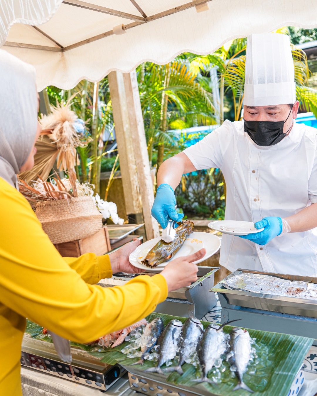 The buffet is served through Friday to Sunday, and features a plethora of international fare like fresh seafood, outdoor BBQ, DIY stations, live meat carvings, dim sum, mains and more. Some of the highlights you can expect from the buffet menu include Flower Crabs, Whole Salmon, A la Minute Oyster Omelette, Live Roasted Striploin Carving, Braised Beef Brisket, Salted Egg Prawns, Marmite Chicken, Buah Keluak Fried Rice, Durian Pengat and more. For the full menu, see here.