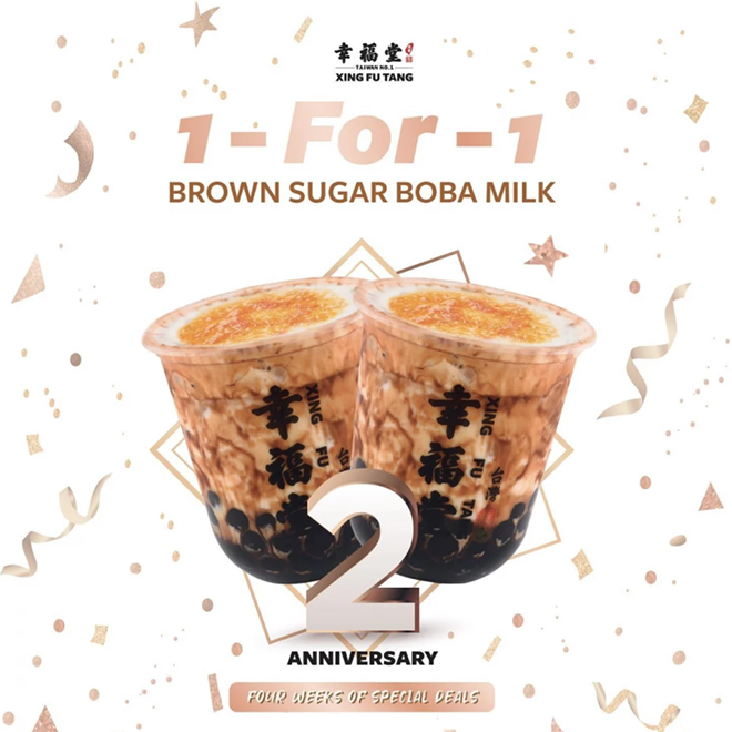 In commemoration of the brand’s 2nd year anniversary, Xing Fu Tang is now offering a 1-for-1 bubble tea promotion from now till 13th June 2021! Redeemable exclusively upon purchase of the store’s $5.30 Signature Brown Sugar Boba Milk, the brand will only be accepting orders made online, while stocks last.
