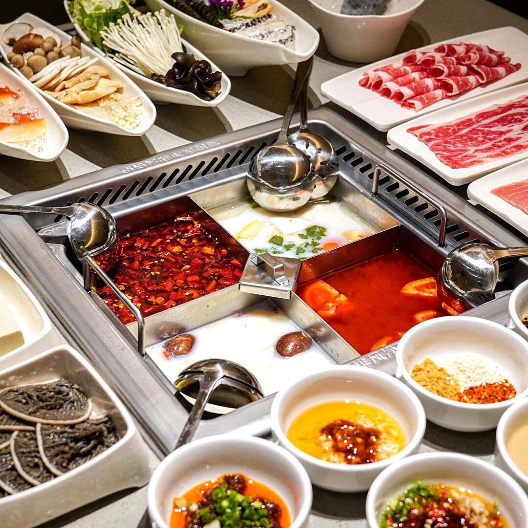 The All-You-Can-Order buffet special lets you order unlimited servings of various meats, seafood, hotpot dishes, vegetables, sides, carbs and more: including items like Haidilao Beef, Black Pork, Duroc Pork Belly, Tender Fish Slices, Aussie Sliced Lamb Shoulder, Fish Roe Stuffed Beancurd, Fish Curd, Frozen Tofu and more.