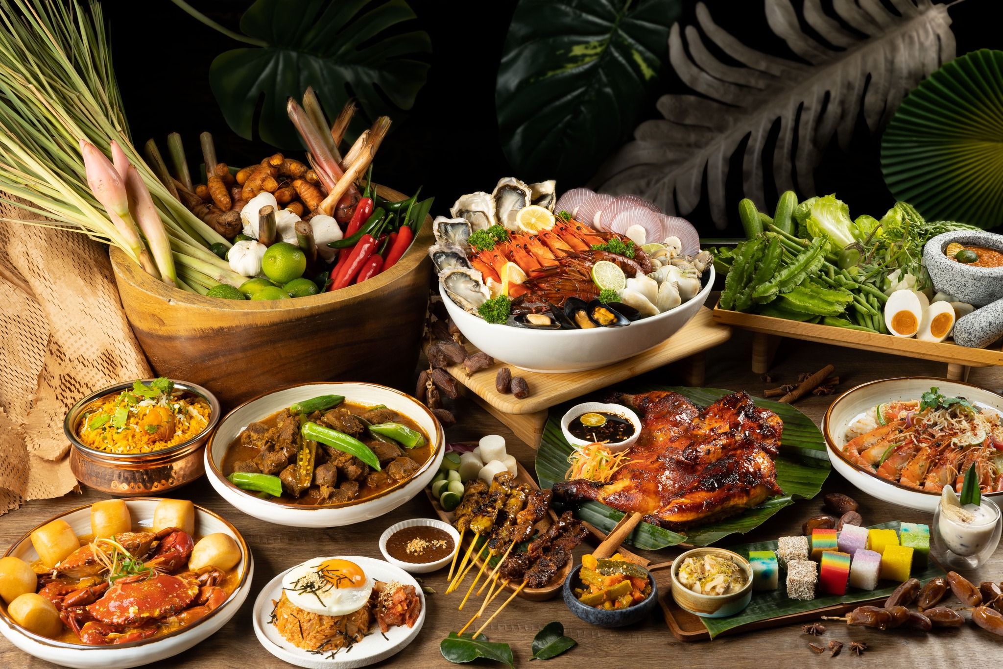 Highlights from the buffet spread include Fresh Oysters, Boston Lobster, Collagen Tonkotsu Noodles, Kopitiam Style Chilli Crayfish, Slow-Roasted OP Rib, Singapore Black Pepper Crab, Pineapple Glazed Gammon Ham, Braised Beef Brisket, Seared Duck Breast, Beef Pot Roast and more.