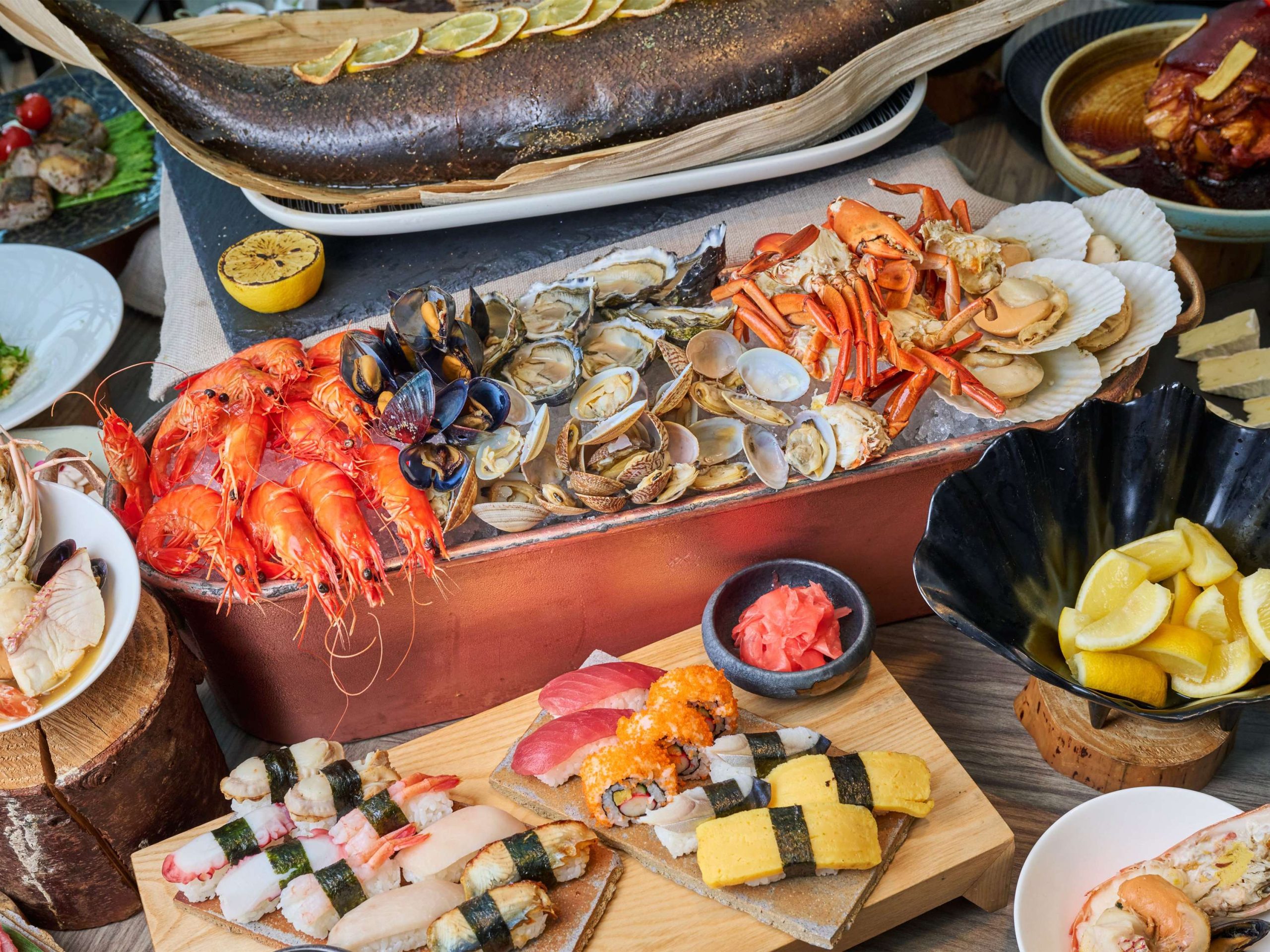 Feast on items like Alaskan King Crab Legs, Snow Crab Legs, Boston Lobsters, Lobster Claws, Yellowtail Sashimi, Crispy Soft-shell Crabs, Smoked Tuna Loin, Crab Meat & Fish Maw Thick Soup, Locally Farmed Frog, Beef Prime Ribs, Roasted Suckling Pig, Grilled Mala Giant Squid Skewers and more. You can make your reservations here.