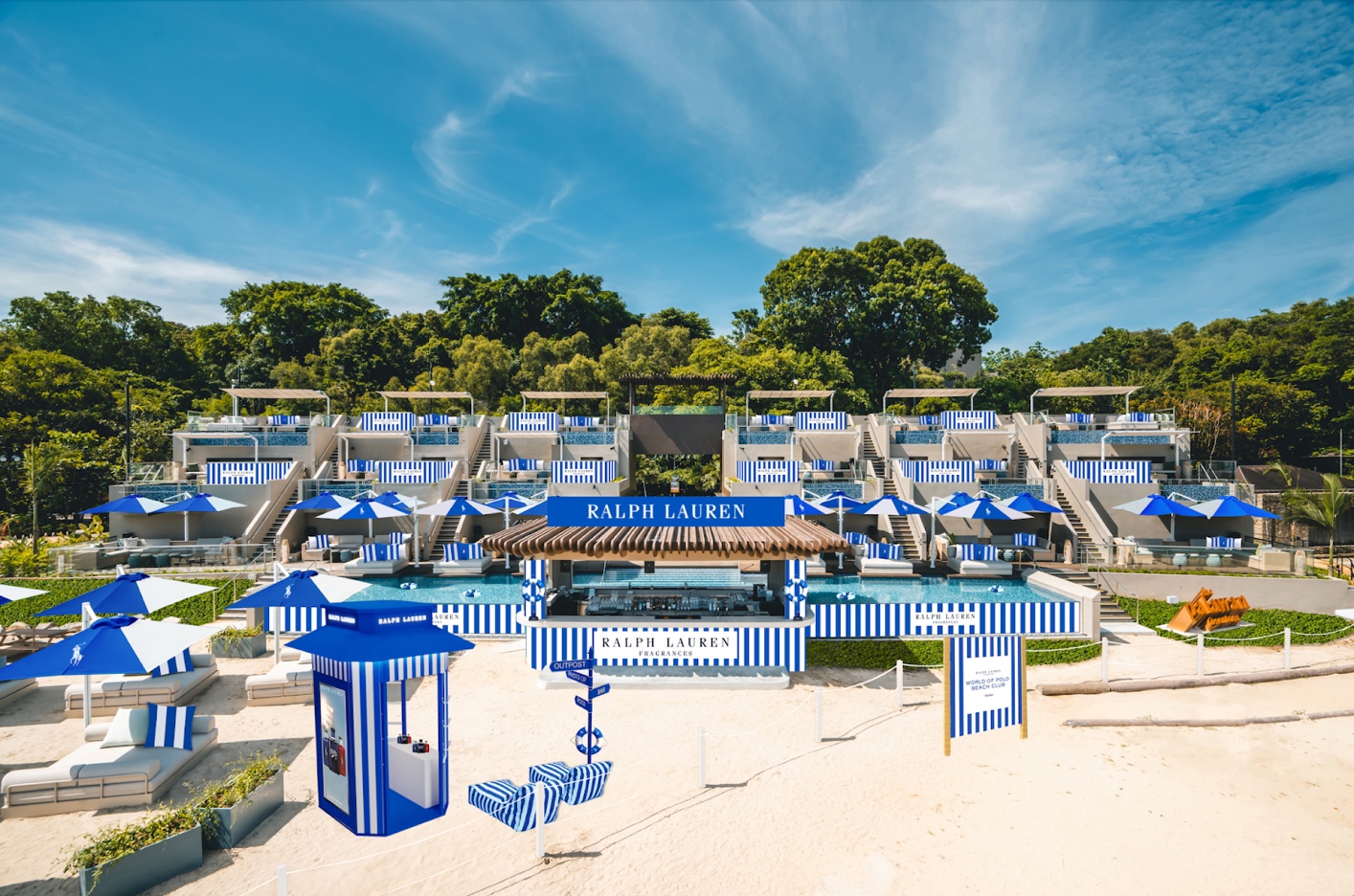 The beach club has been transformed into Ralph Lauren’s iconic sporty blue and white colours, and you’ll also be able to enjoy specially crafted cocktails inspired by the signature fragrances while you’re there.