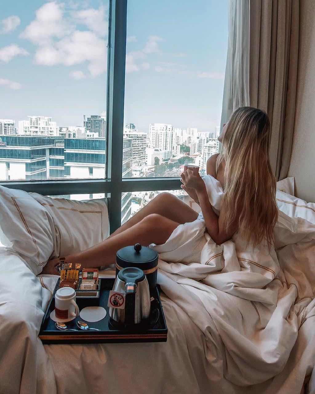 Known for their pretty rooms with alcove ceilings and mezzanine beds, M Social Singapore has prices starting from $141 – quite a good deal for a super Instagrammable stay! Expect lots of reflective surfaces that lend your room a spacious and modern look, and be prepared to snap loads of bathrobe selfies.