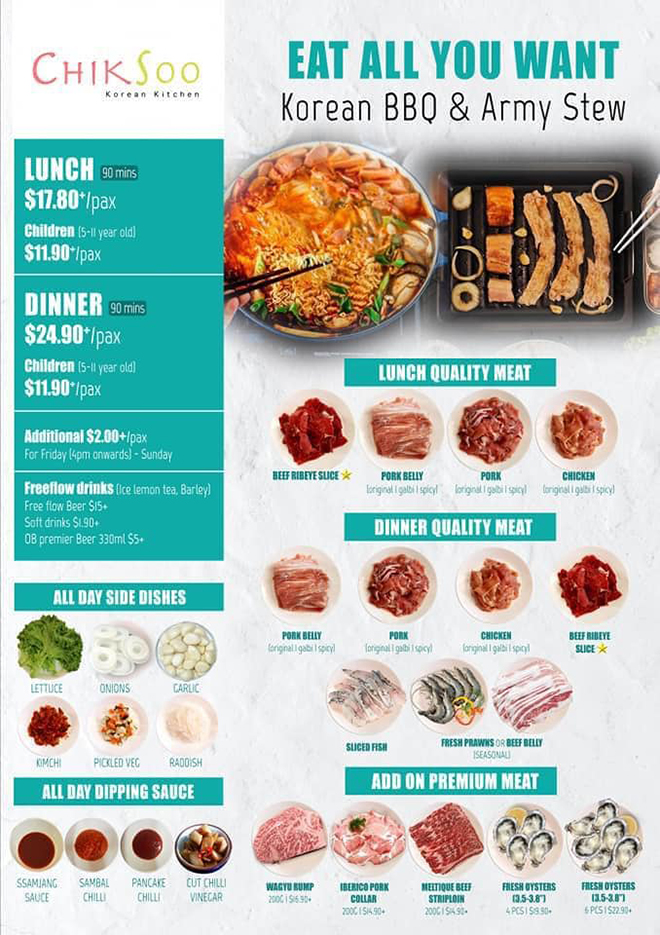 Commemorate Singapore’s 56th Birthday with ChikSoo’s exclusive lunch and dinner buffet promotions! From now till 31st August 2021, grab a friend and indulge in a 90 minute lunch barbeque and army stew buffet worth $17.80 per person on weekdays and $19.80 per person on weekends.
