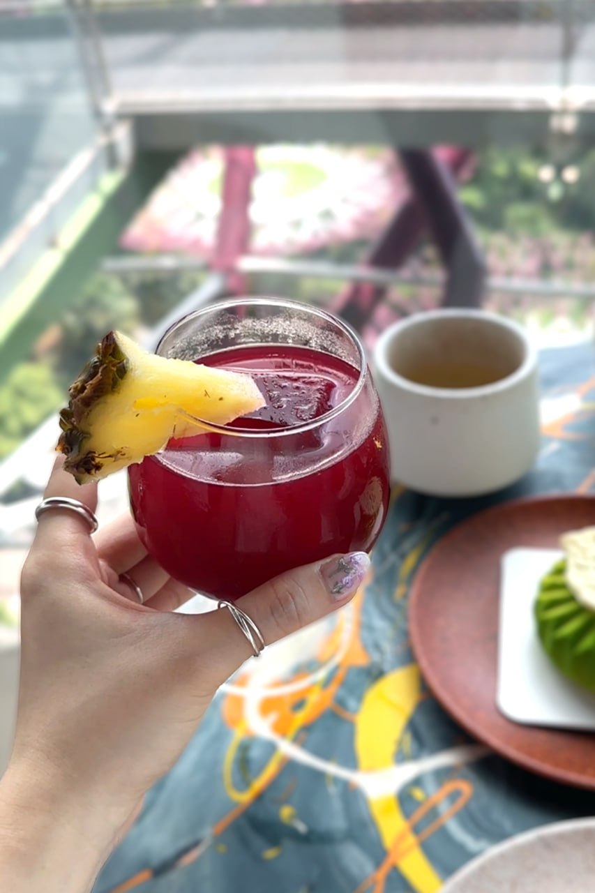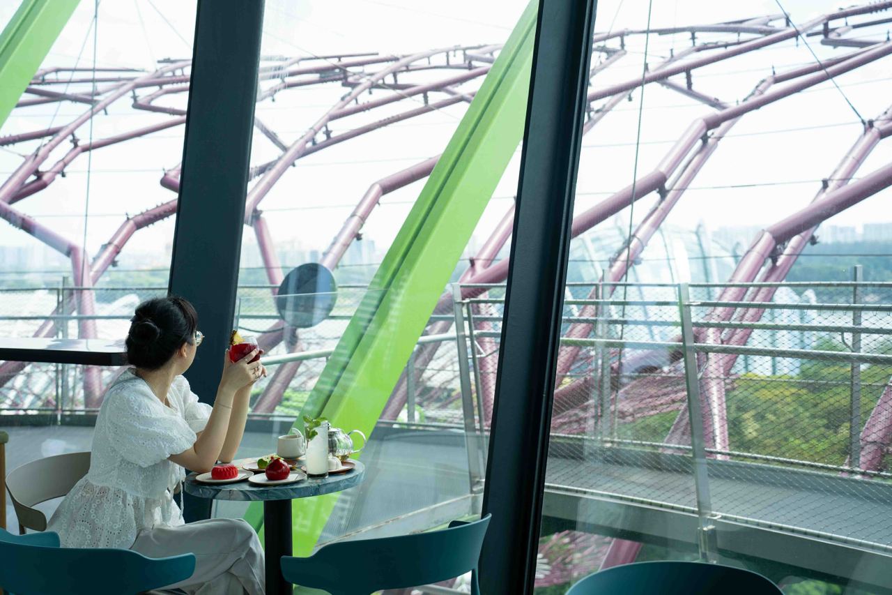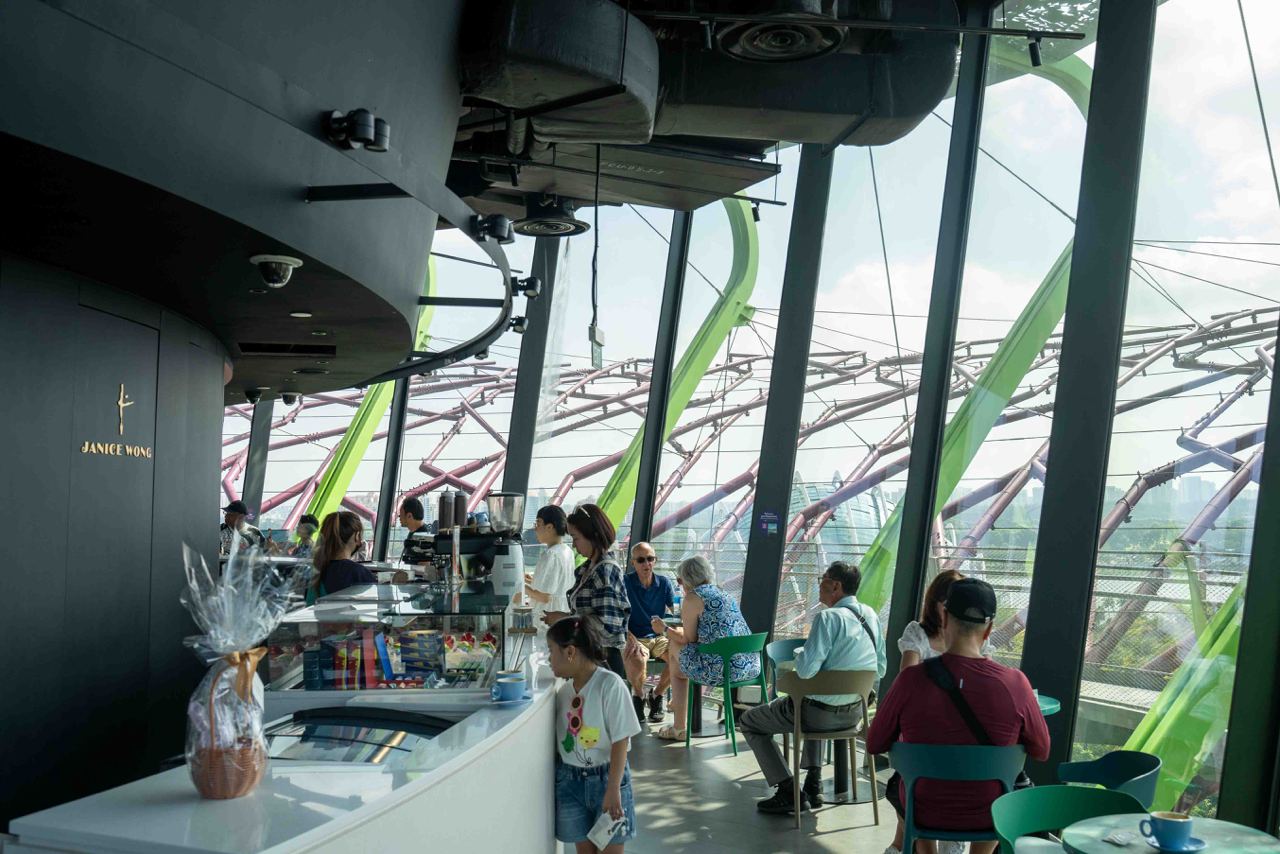 Janice Wong at the Supertree sits at the top level of the Supertree Observatory, standing at a whopping 16 stories high—that’s about 50 metres above ground! The café is also encased in floor-to-ceiling glass windows all around for a “glasshouse”-esque vibe, offering 360-degree views from any seat in the space.