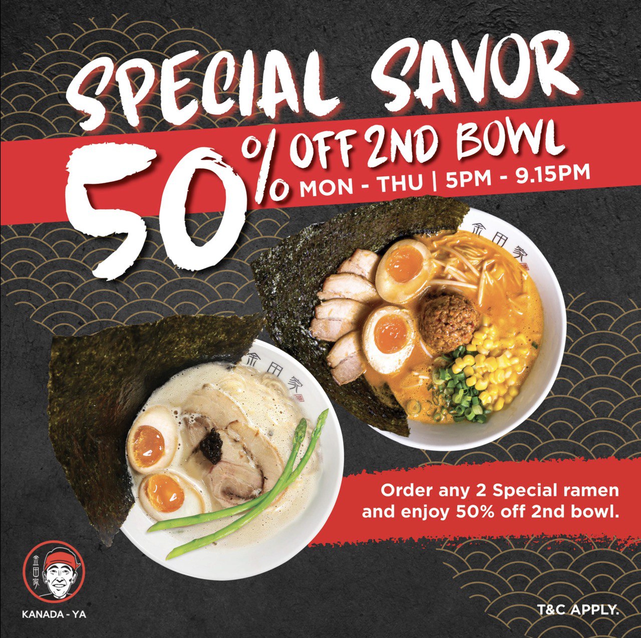 50% OFF SECOND BOWL OF RAMEN AT KANEDA-YA ON WEEKDAYS TILL END OCTOBER 2023!