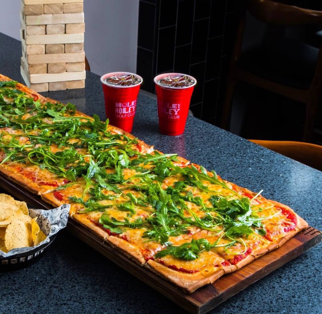 The One Metre Long Pizza is only available at Holey Moley. Source: Holey Moley