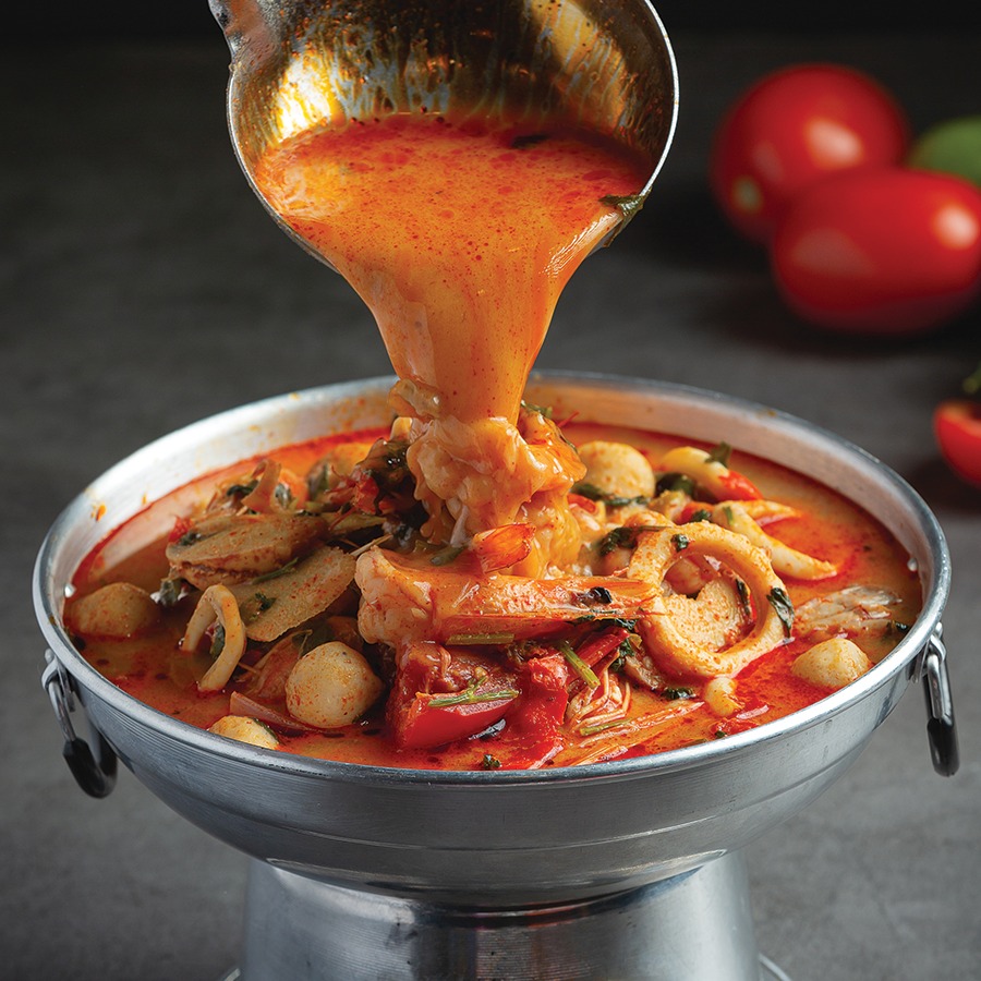 Enjoy Thai classics and seafood dishes like Crispy Fluffy Fish with Mango, Tom Yum Soup with Crab Omelette, Crispy Duck with Mango Salad, Thai Steamed Fish Curry, Miang Kham in Oyster Shell, Slow-Cooked Lamb Shanks, Jackfruit Sticky Rice, Fried Banana with Grated Coconut and Bubur Sum Sum, among others. If you come in a group of 6, you can also enjoy their buy 5 get 1 free buffet promotion!