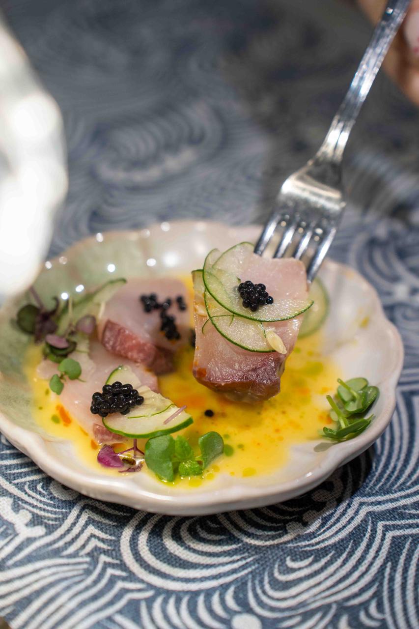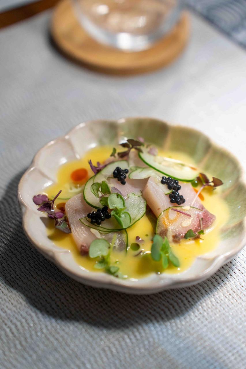 What’s most attractive about Bryan’s is definitely the price point: just $89 nett per person for 5 courses, which is probably unheard of in the private dining scene, and is likely one of the most affordable private dining courses you’ll find so far. Even with the accessible price point, you’re still getting value: as the course includes seafood, meat and even some booze. The dinner course starts with some warm Hakutsuru sake to open up your palate, before the first cold appetiser of Amberjack is served. What really makes the dish is the delightfully tangy passionfruit vinaigrette that’s paired with the sashimi, making it a refreshing start to the dinner.