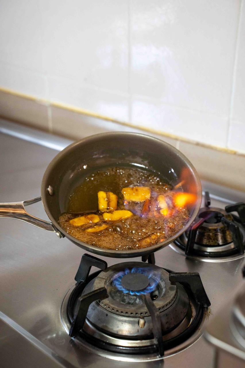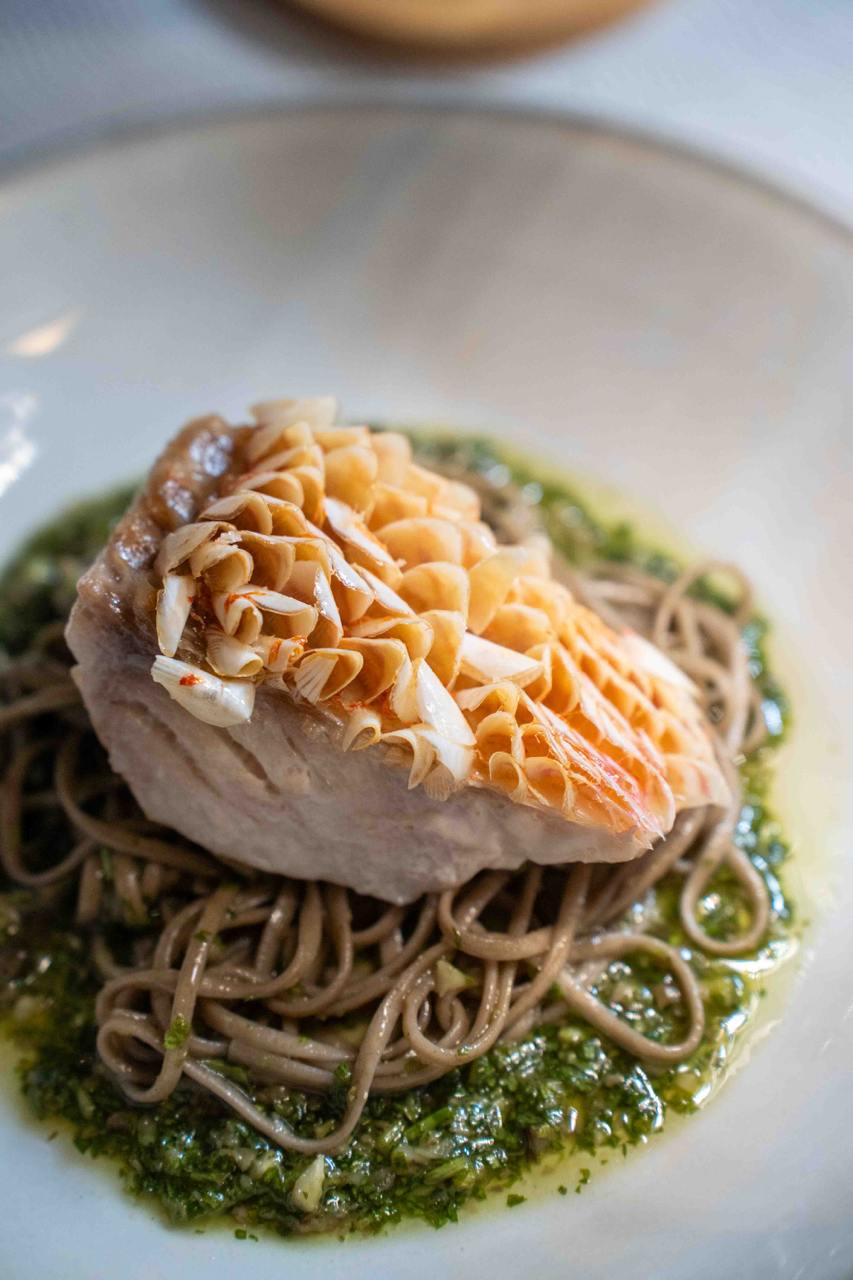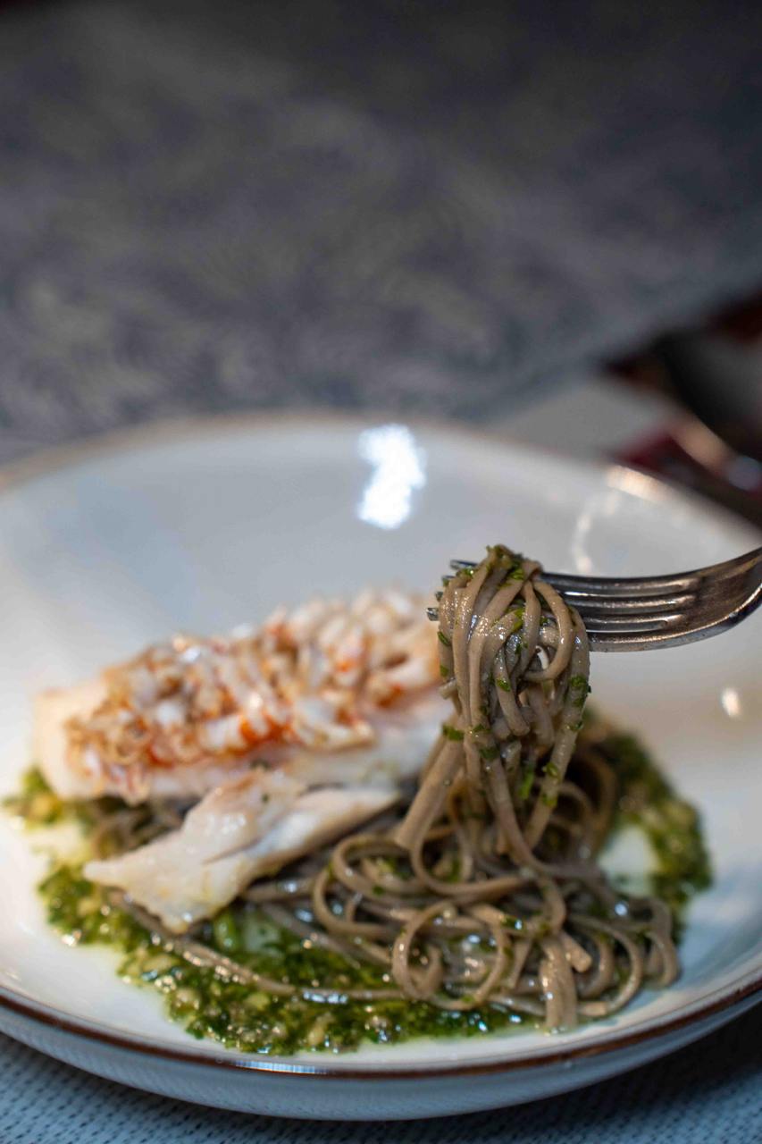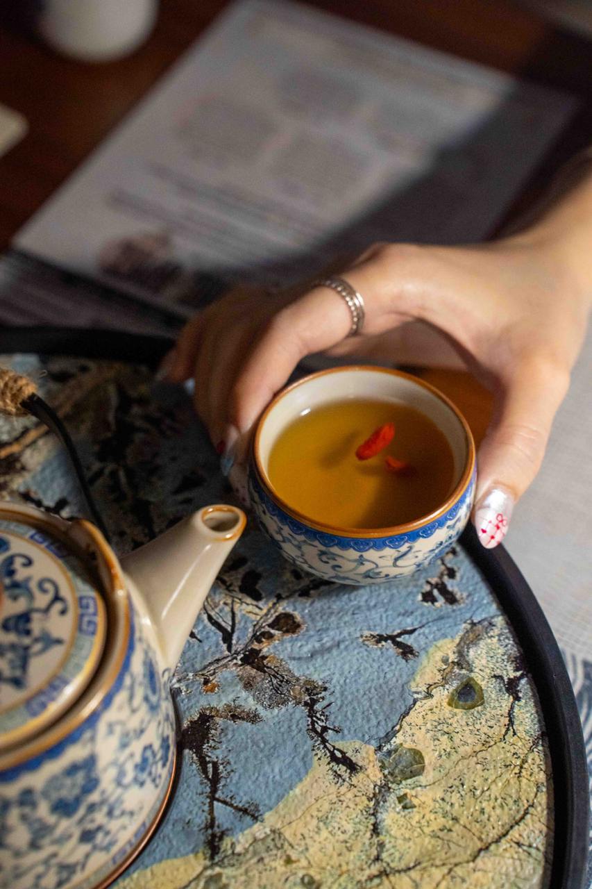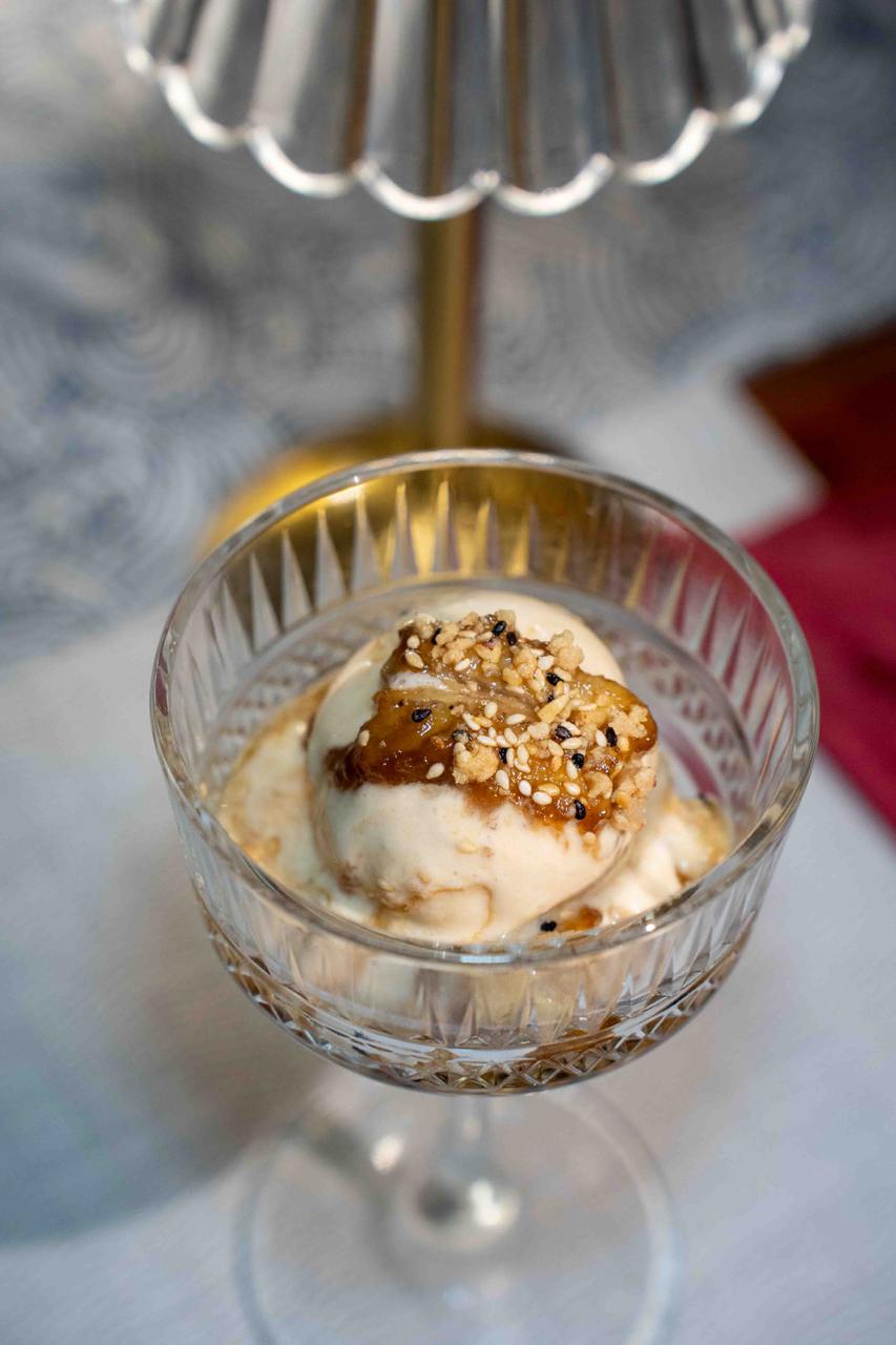 The final main dish is a Snapper fillet, served skin-on on a bed of mala-esque buckwheat noodles. The skin of the snapper fish is basted in hot oil until the scales are blistered and crispy, so you get both the crunch from the skin and the softness of the fish itself in one bite. As for the buckwheat soba noodles below, it’s tossed in a homemade salsa verde made with Chinese peppercorn oil—very similar to the numbing spice of mala, without being too overpowering. For dessert, you get to finish on a sweet note with whisky-spiked Bananas: ripe bananas are flambéd in whisky and caramelised with brown sugar, before being topped on a scoop of caramelised banana ice cream and sesame crumbles. Our only gripe with this dessert is that it might be just a tad too sweet, and we would’ve preferred if there was a more refreshing or sour dessert to end the course. Before the dinner course ends, you’ll also be served some hot red date cinnamon oolong tea to soothe the stomach and aid digestion.