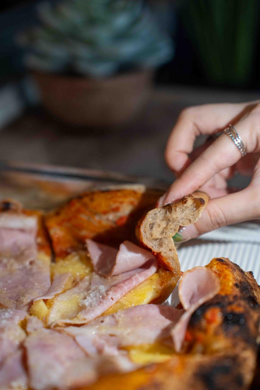 What we really like about JR Pizzeria’s pizzas is the dough: he uses only artisanal 00 flour to make his sourdough-esque pizza dough for a more fine texture. The pizza is also intentionally kneaded just barely, so it doesn’t get too chewy and remains light and fluffy after it’s been proofed. The result: a crusty pizza dough that’s crunchy on the outside and perfectly airy inside. The dough itself is so addictive that we could’ve eaten it on its own.