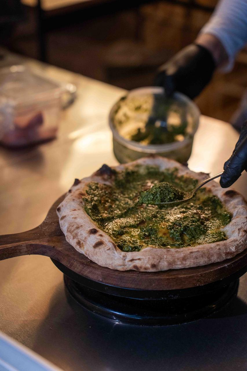 Mortadella & Pistachio Pesto Pizza ($23.50)