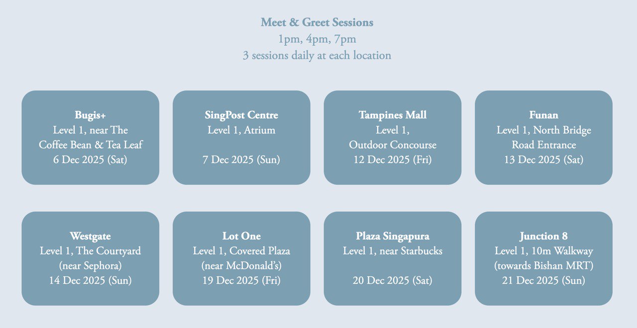 Mofusand fans in Singapore are in for a treat, as this will be the very first time the Mofusand mascot will be venturing outside Japan for a Meet & Greet appearance. You’ll be able to catch the Mofusand mascot IRL at 8 different CapitaLand Malls in Singapore, starting from 6th December 2025 onwards. The Mofusand mascot will be making an appearance at the following locations and dates: