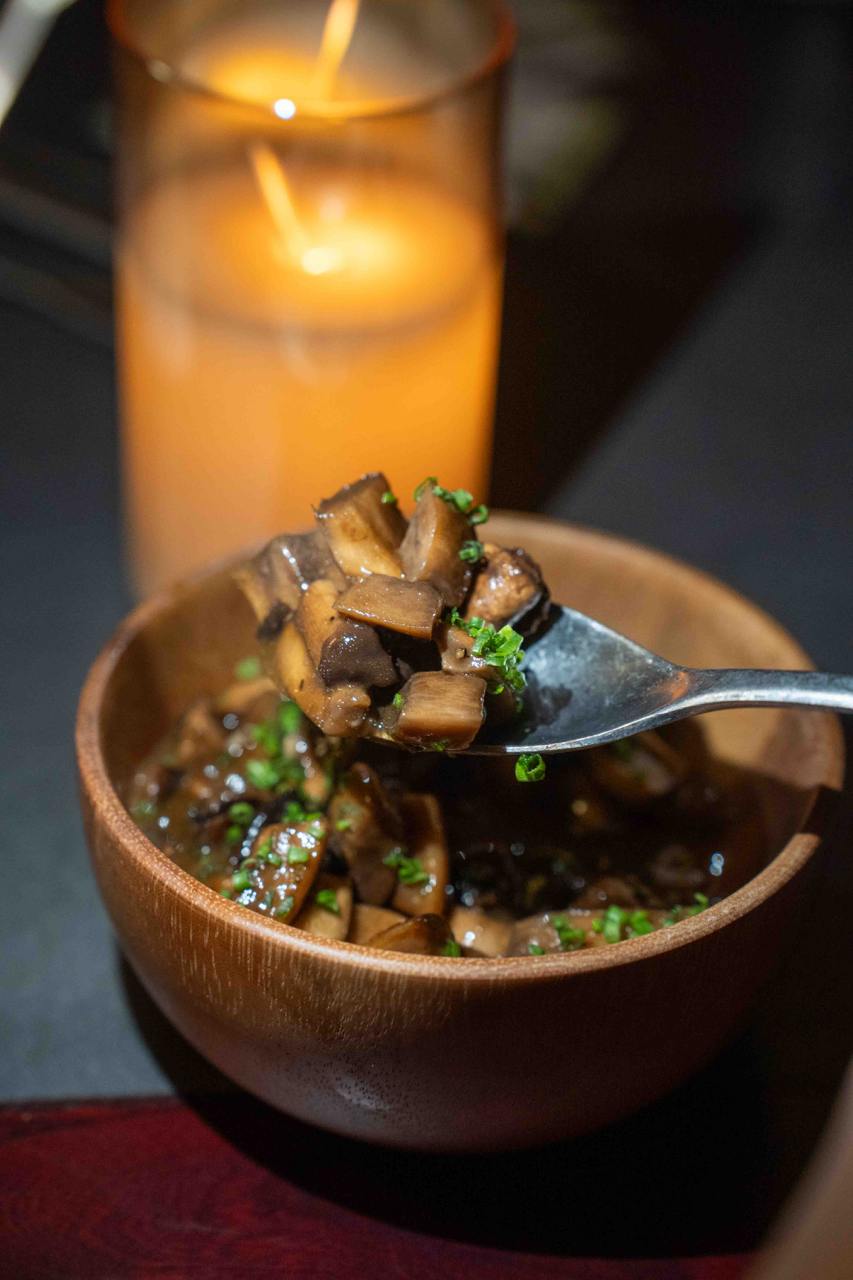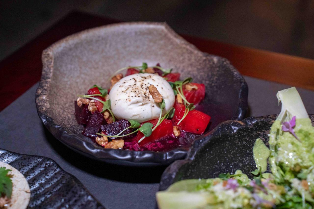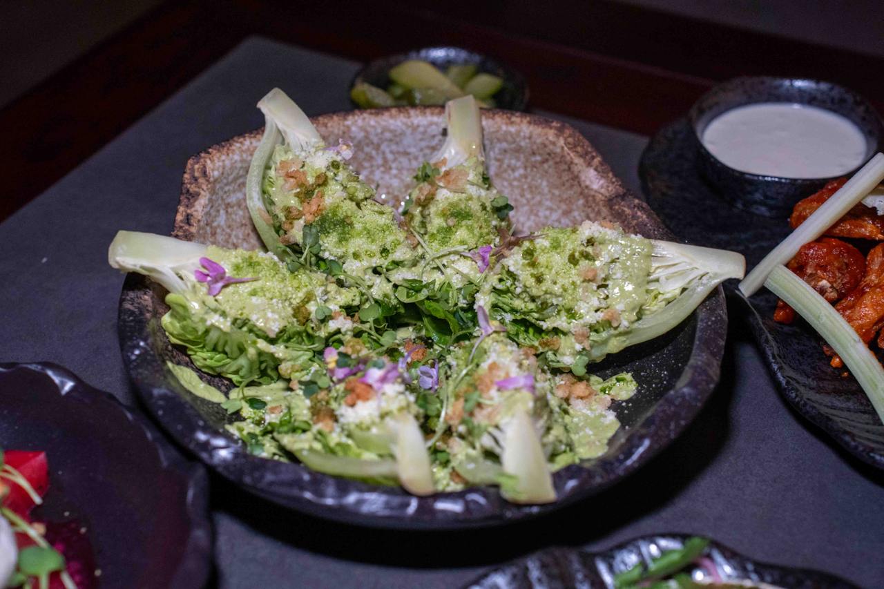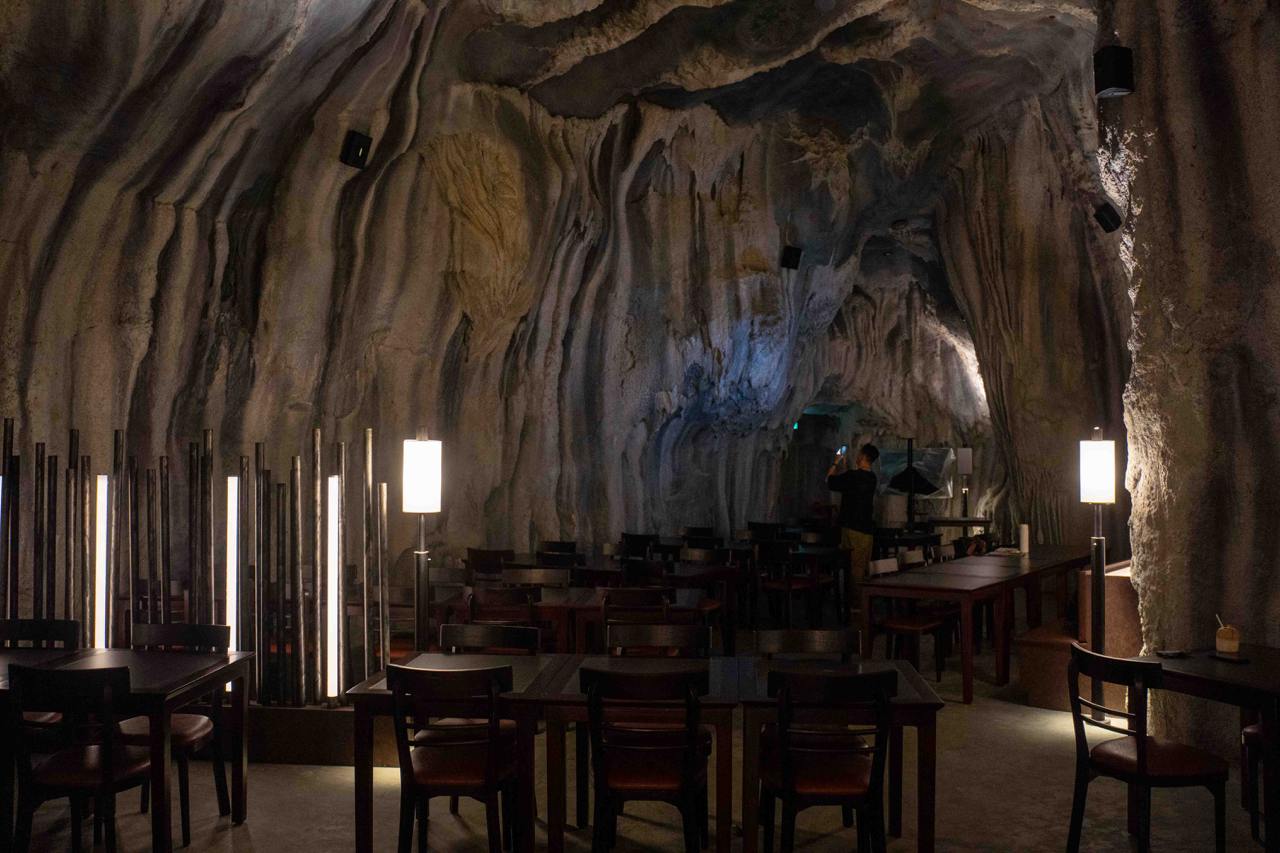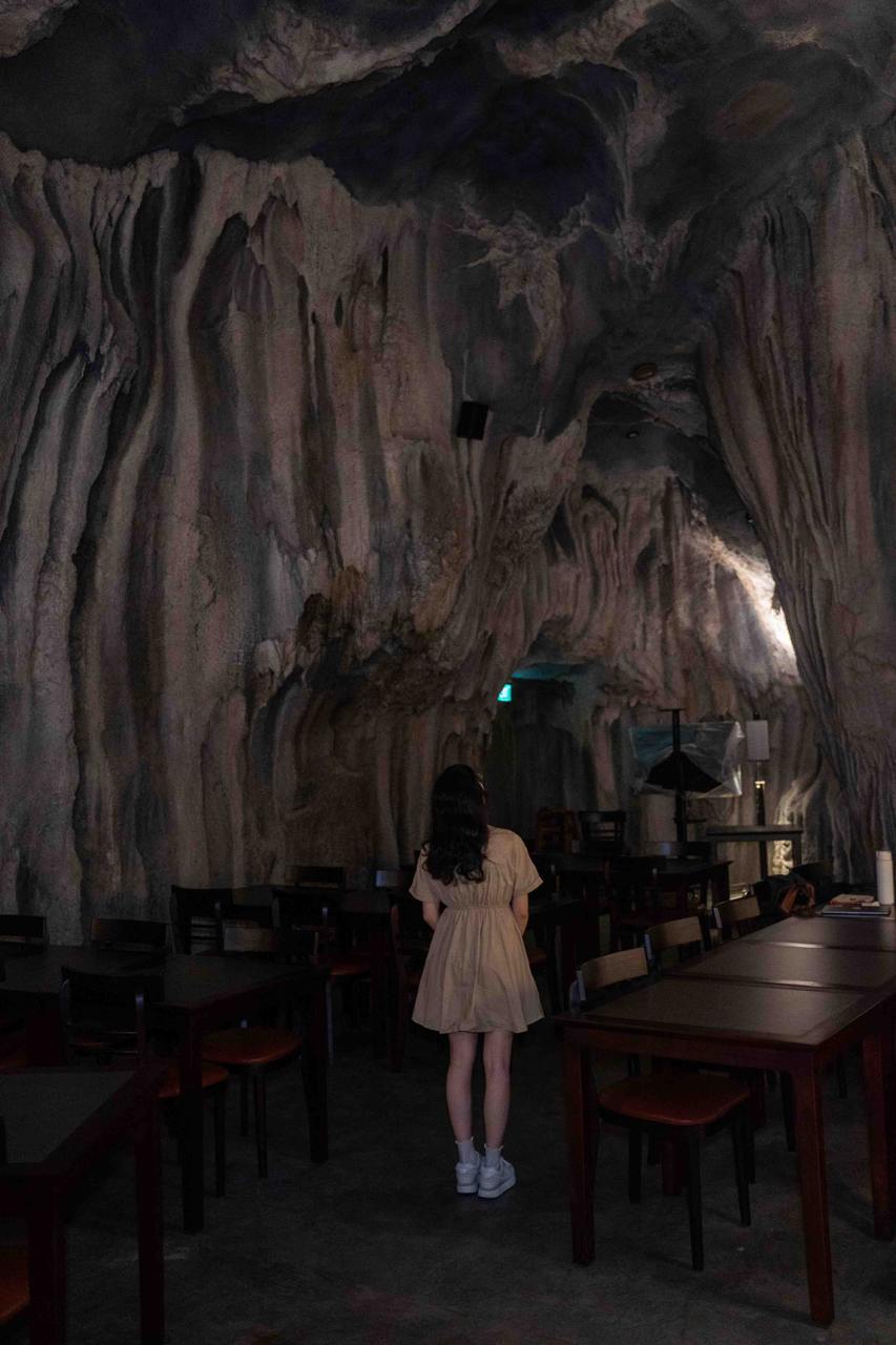Let’s talk about the space: for a “restaurant in a cave” experience, we’d say they’ve done a pretty good job in replicating and mimicking the natural cave vibes. You’re surrounded by textured walls and irregular ceilings that make you feel almost like you’re dining in an underground chamber—in a cave, if you will. The space is also very dimly lit with warm crystalline lights, kind of like the stalactites or dripstone formations you’ll find in actual caves.