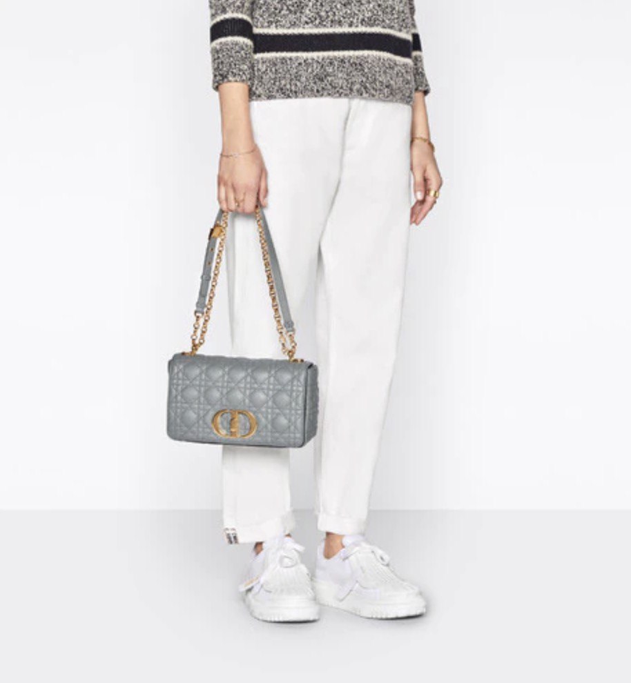 As a tribute to Christian Dior’s sister, Catherine, the Dior Caro collection is emblematic of the luxury fashion house’s elegant design and excellent craftsmanship. The iconic Dior Caro Bag is made in Italy, cut from calf skin, embroidered with the classic Cannage topstitching and finally adored with the hallmark “CD” signature hardware logo.