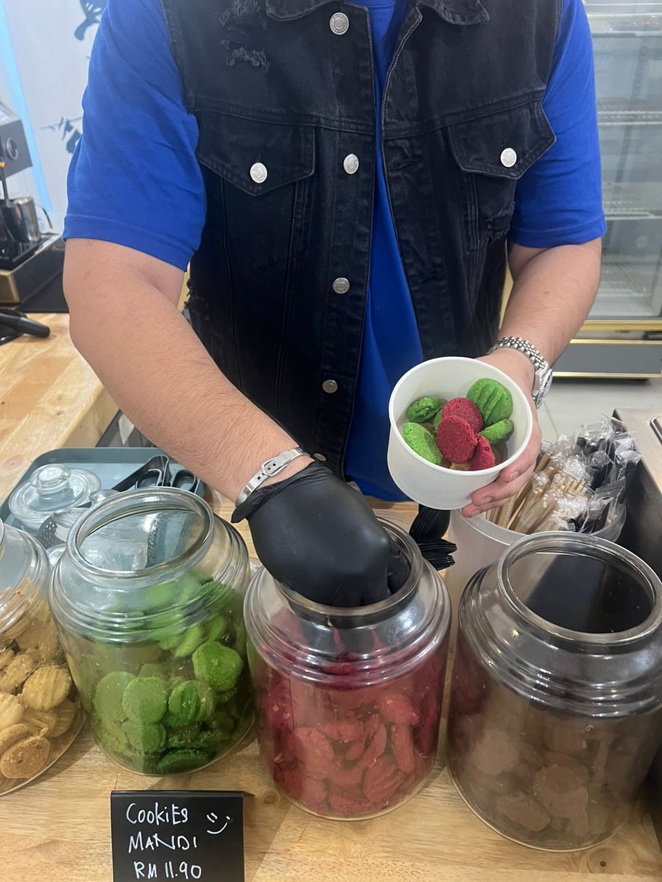The “Cookie Mandi” is priced at RM 11.90 per bowl (~$2.80 SGD per bowl), and is customisable to your liking with up to 4 different cookie flavours and 2 sauce toppings. Cookie flavours you can mix and match from include Red Velvet, Matcha, Vanilla and Dark Chocolate; while sauce options include Milk Chocolate, White Chocolate, Biscoff, Dark Chocolate, Strawberry or Matcha.