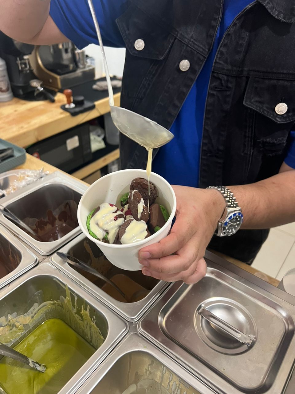 One of their signature items is the “Cookie Mandi” which literally translates to “Cookie Shower” and features cookies literally “showered” or drenched in chocolate sauce. From the pictures we’ve seen online and on their socials, the “Cookie Mandi” seems to be an absolute explosion of sweetness: you pick the cookie flavours you want from the cookie bar, and choose the sauce you want doused on top of it!