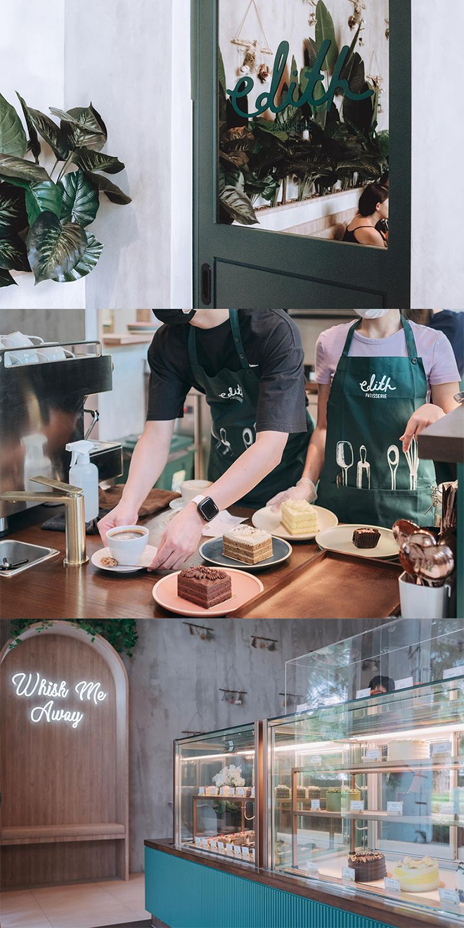 Set within a 25-seater-space, the Edith Patisserie Cake Bar showcases a deep forest-green interior complemented by shades of grey and light brown. Complete with an industrial cement finishing, an array of wooden furnishing, this cafe and bakery provides a completely new and unique menu when compared to the slew of neighboring F&B businesses on the ground floor.