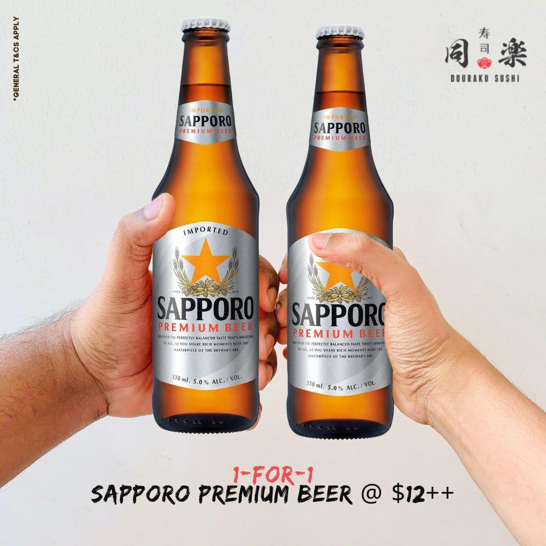 No minimum spending is required to enjoy this promotion, but you can enjoy your Sapporo Premium Beers with some of Douraku’s Japanese bites like Soft Shell Crab Karaage ($14), Eihire ($15), Tatami Iwashi ($16) and more!
