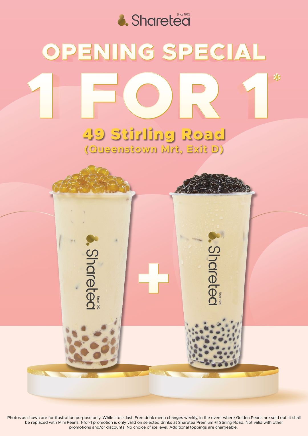 As a grand opening special of Sharetea Premium @ Stirling Road, they are offering 1-for-1 bubble tea drinks from now till 3rd April 2022! This promotion is only valid for select drinks and will vary each week of promotion period.