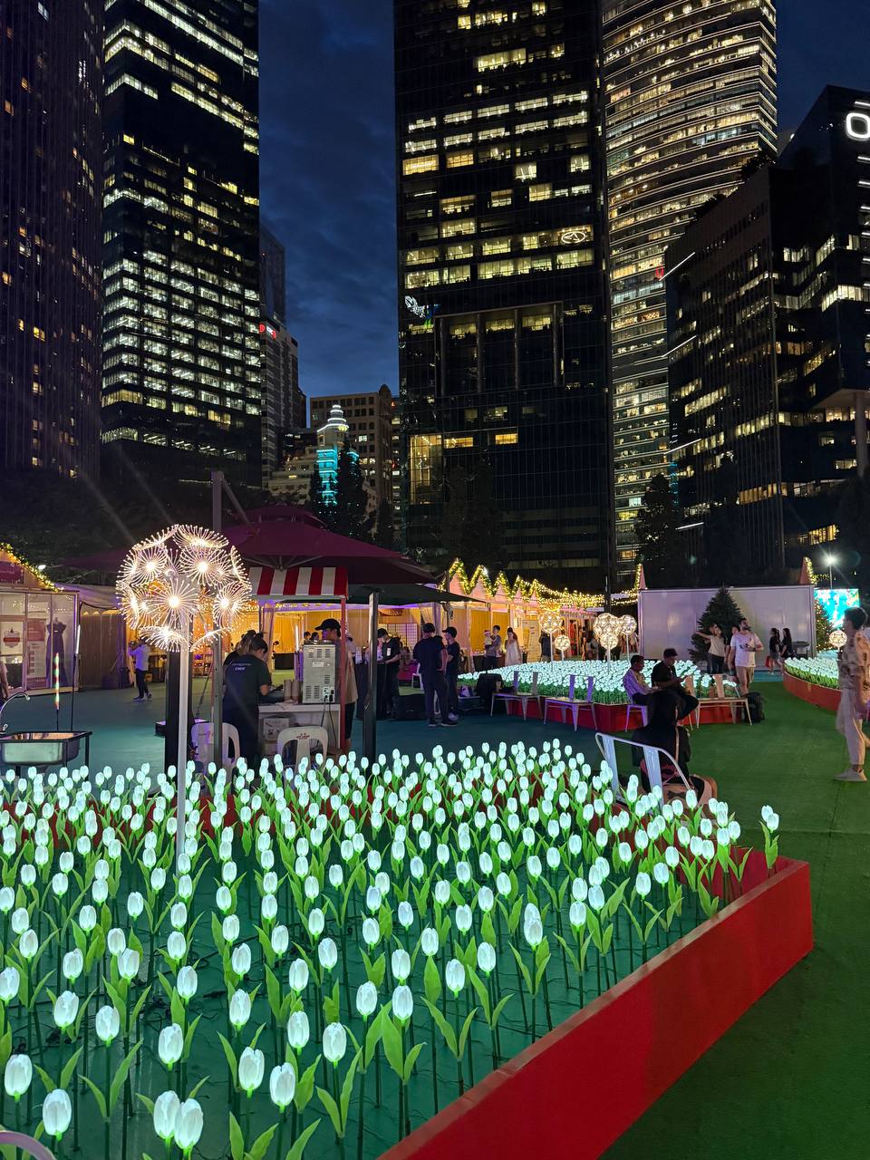 Snap away at the various photo-ops all around the event space, like a larger-than-life “snow globe” photobooth, giant illuminated candy canes, an LED rose and tulip field, LED Christmas tree and more.