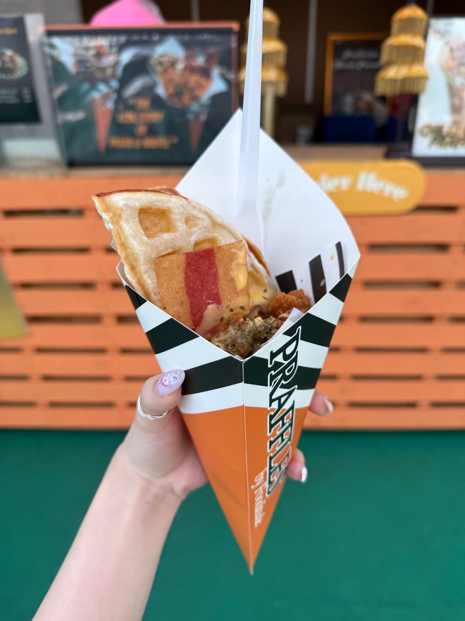 Most of the food items average around $6-$15, with more Asian and local-inspired eats like the viral Pistachio Kunafa Kurtos Roll ($12.90), Sushi Tacos ($10), Cheesy Chicken Mantou Slider ($14) and Bratwurst Buldak Omelette ($12), just to name a few.