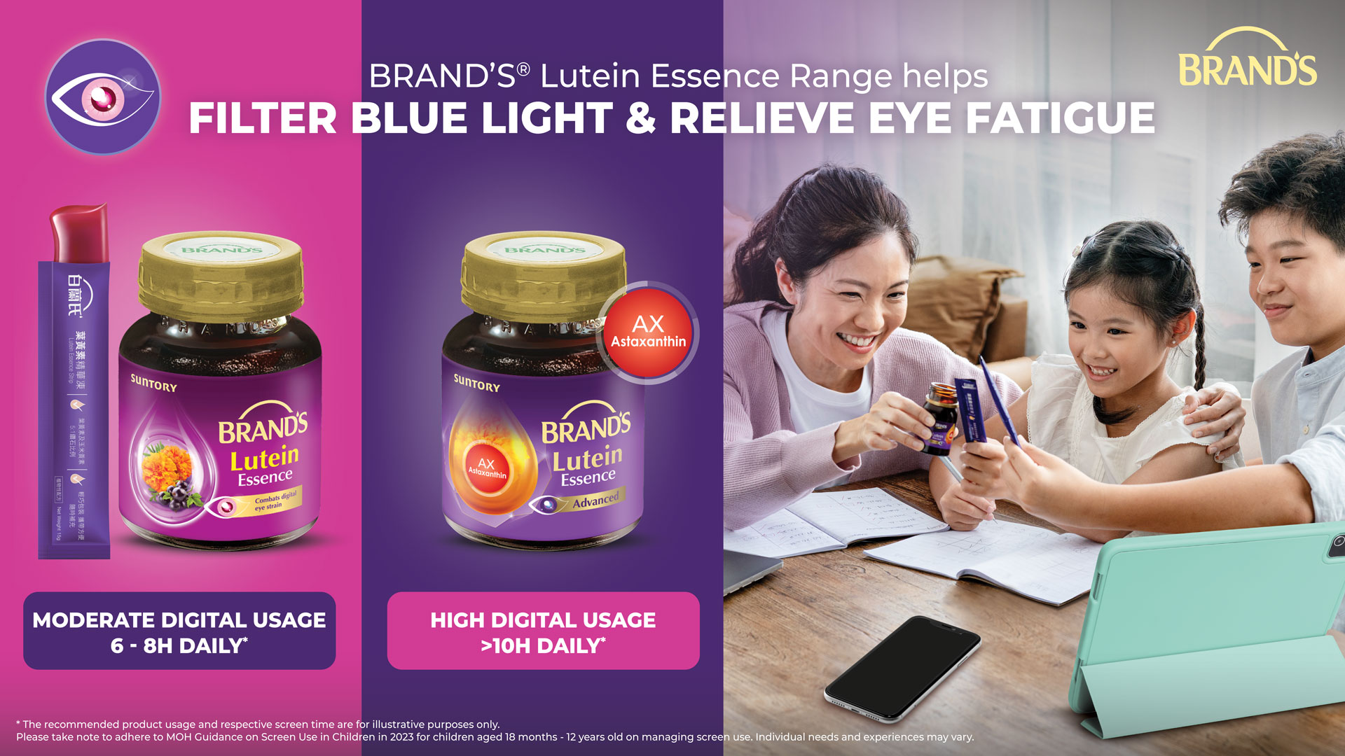 ICYMI: BRAND’S® Lutein products are known to filter blue light and relieve symptoms of digital eye strain such as dry eyes and blurry vision—commonly associated with long hours of screen time. There’s 3 products in the BRAND’S Lutein Range, in both essence and convenient jelly strip format: