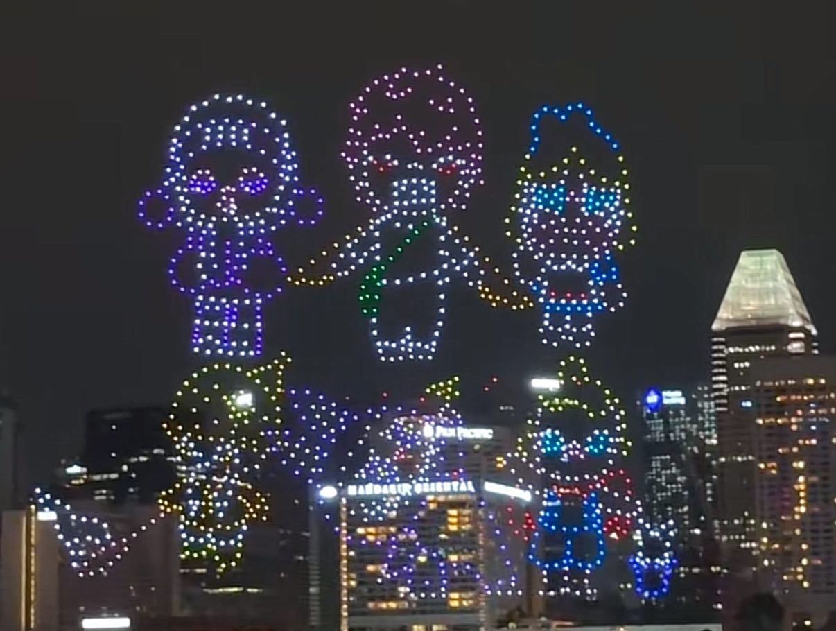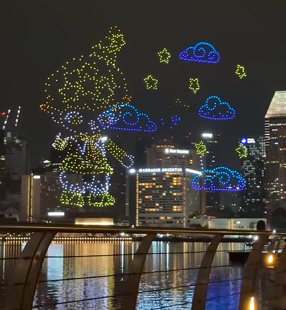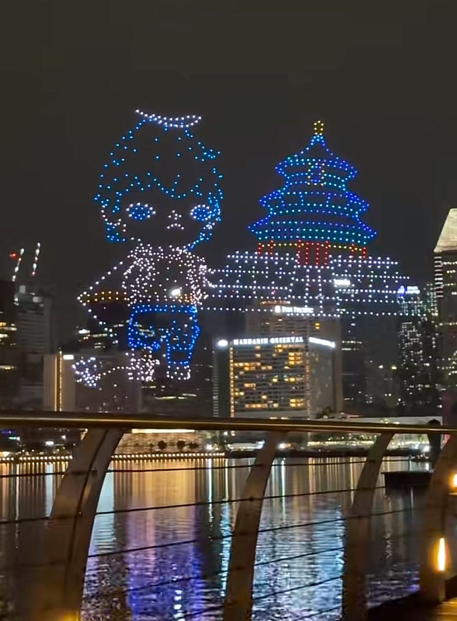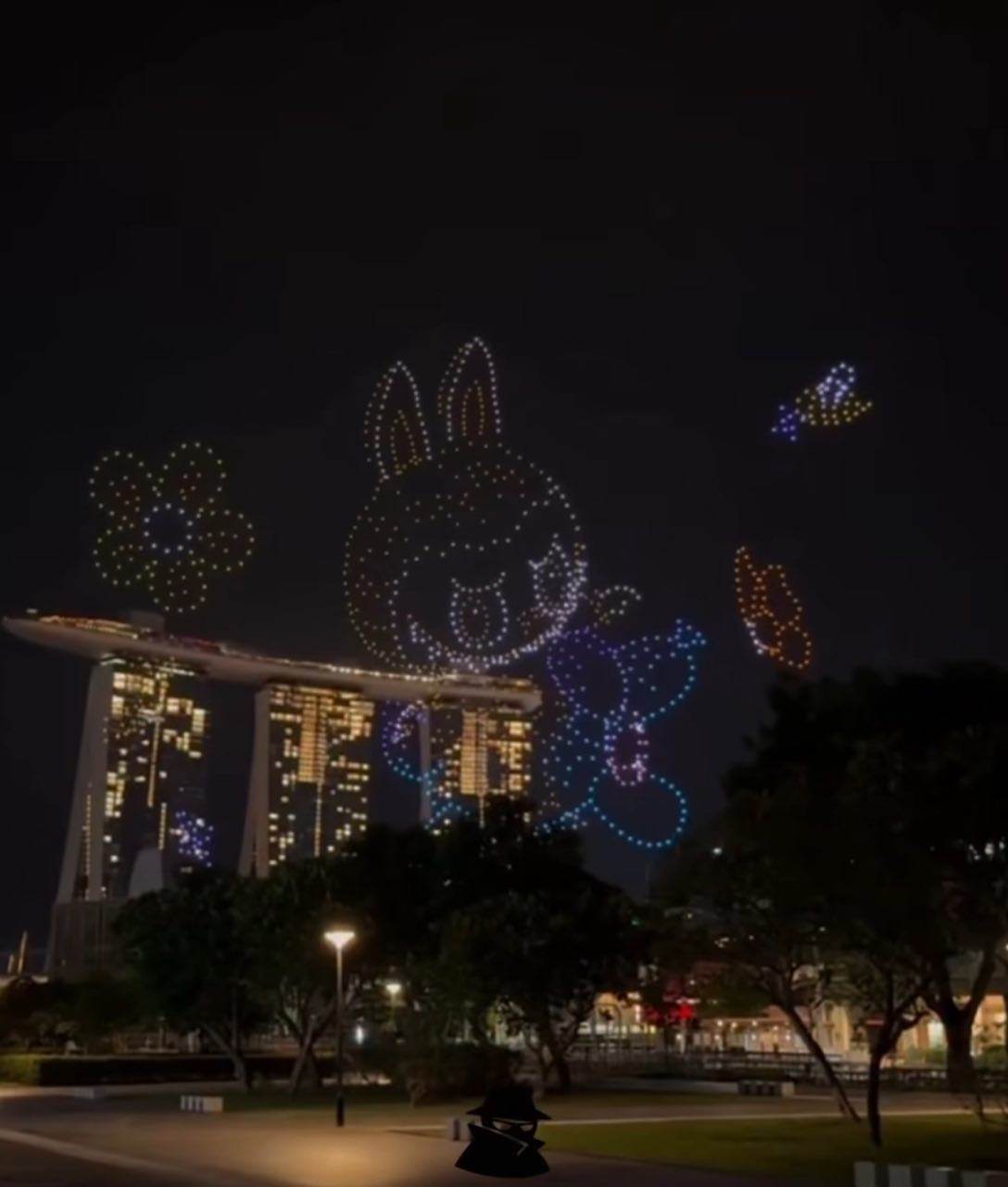@mysterymarketsg POP MART in the sky?👀 We caught a glimpse of a drone show rehearsal at MBS — any ideas what’s coming? #poptoyshowsg #sg #sgfyp #sgtiktok #popmart