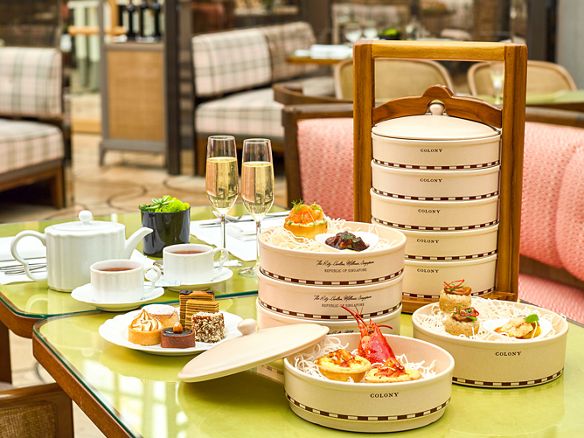 Colony at The Ritz Carlton’s “The Journey” Afternoon Tea takes you on a culinary journey through Singapore’s heritage with an afternoon tea set served in a five-tier ceramic “tingkat”. Highlights include Seafood Rendang  with King Crab in Pandan Bread, Seared Tuna in Spiced Masala Wrap and Yuzu Praline Tart.