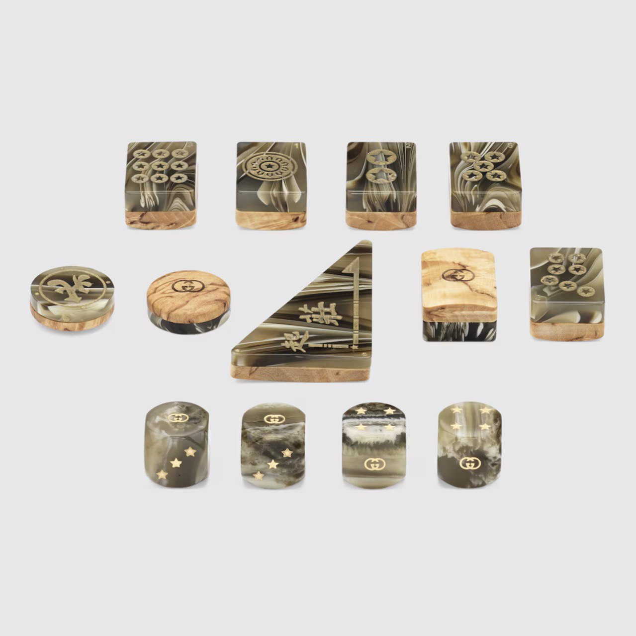 The Decorative Mahjong Set with Web ($29,440) comes in a stunning hexagonal-shaped GG Supreme canvas case, complete with a top handle, gold hardware and lock closure. Inside, there’s 4 layers showcasing Gucci’s iconic archival print designs, each containing ornate marble and wood mahjong tiles, dice and tokens. The limited-edition set is available for pre-order here.