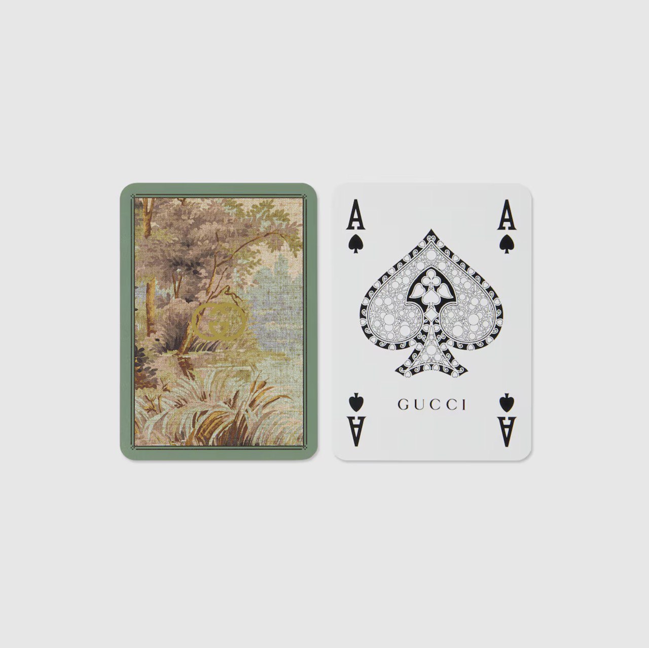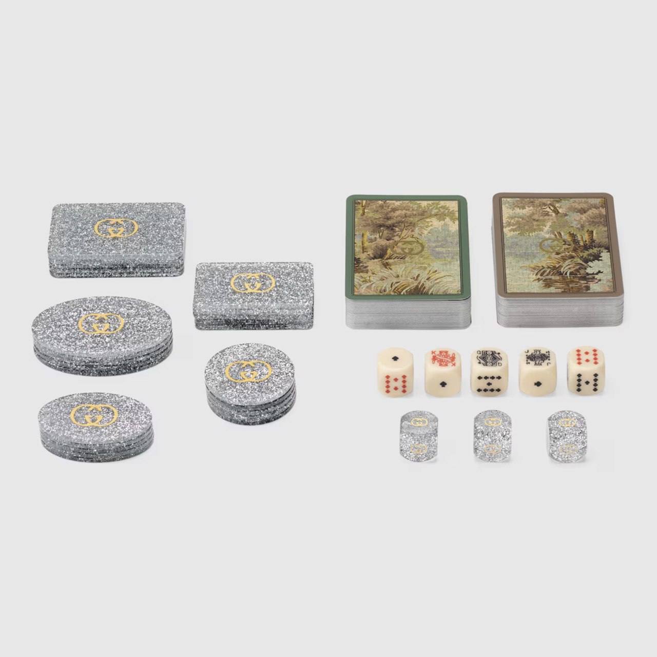 They’ve also launched a boujee Card Set with Double G ($550) featuring a whimsical vintage forest-themed card design contained in a GG Supreme wallet case, so you can easily carry it around. There’s also other collectibles like a stunning garden-inspired Decorative Poker Set with Crocodile Case ($47,360) and a marble Dice Set ($700) that comes with its own monogrammed case.