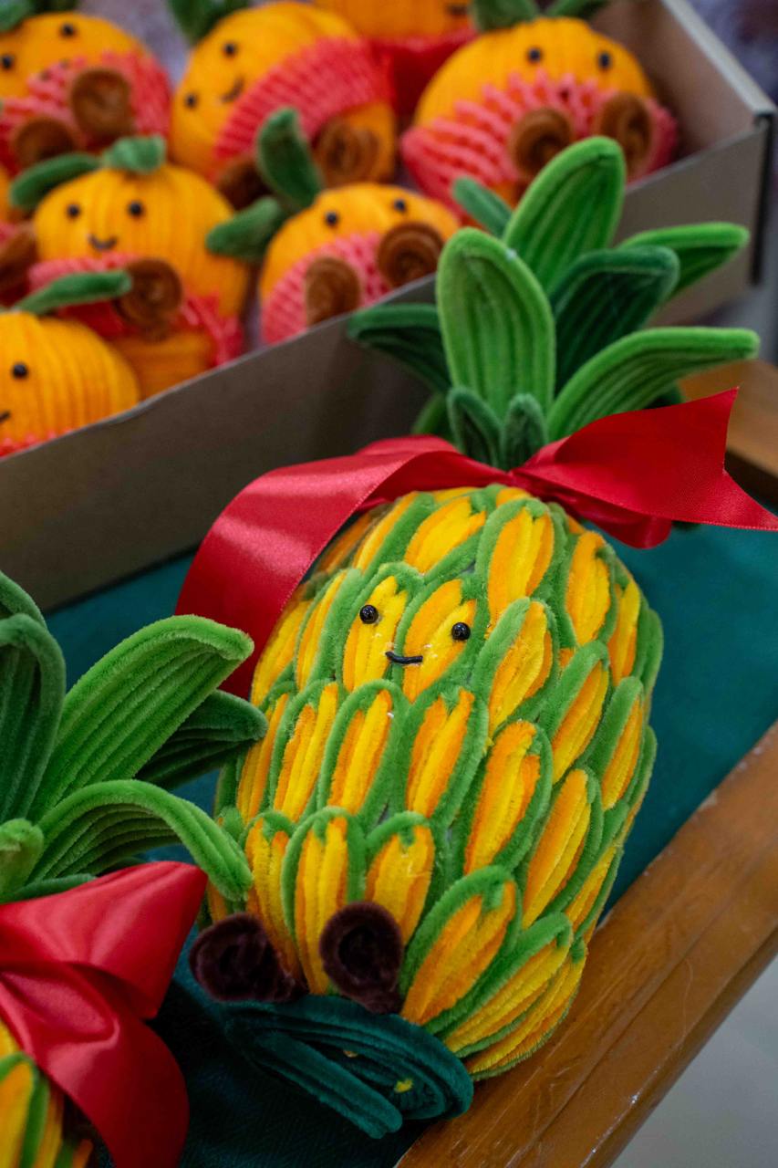 We paid a visit to the seniors at Carer, and found them all gathered together, hard at work making the ornaments for all their CNY preorders. Their most popular item, and also a hot favourite of all the seniors at the centre, are the Handmade Oranges (from $38/pair), as they represent good luck and auspicious wishes for the festive season. The oranges feature adorable Jellycat-inspired faces and are also wrapped in mesh, just like actual fruits you buy from the market. Another favourite for CNY is the Handmade Pineapple ($98), which of course, symbolises fortune and prosperity.