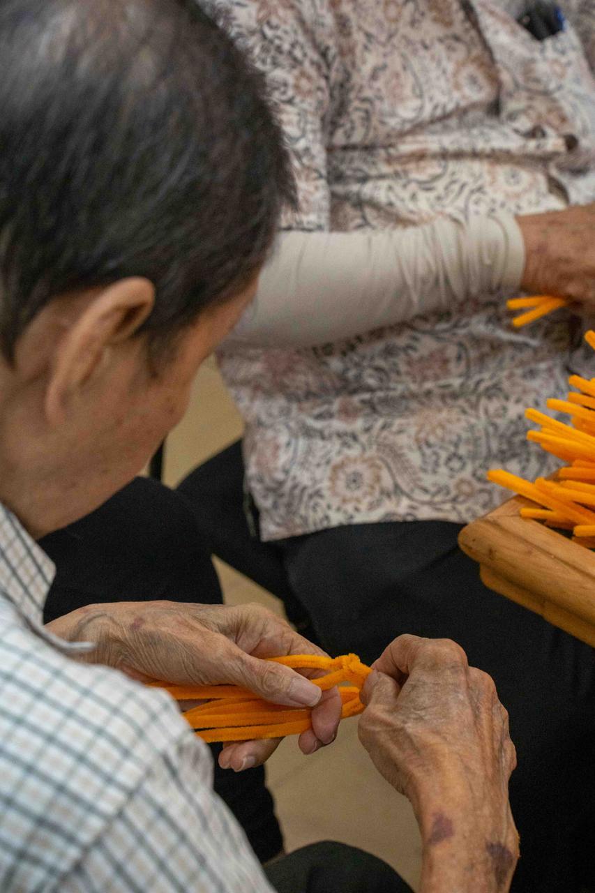 These lovable seniors are from Carer, an eldercare centre and activity club in Singapore dedicated to “making eldercare fun” by offering more unique activities for seniors to participate in, especially to keep them active and improve dexterity. One such activity is the making of various ornamental handicrafts: like Jellycat-inspired mandarin oranges, pineapples and flower vases for the festive season. The quirky items are made from colourful pipe cleaners, and the seniors are responsible for folding and shaping the pipe cleaners to form the designs.