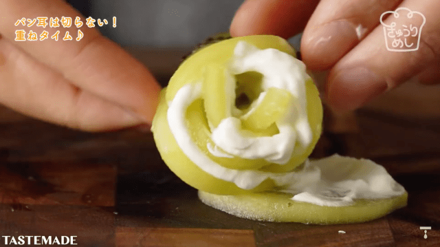 • Yellow kiwi fruit — Slice, apply cream on top and roll into a roll