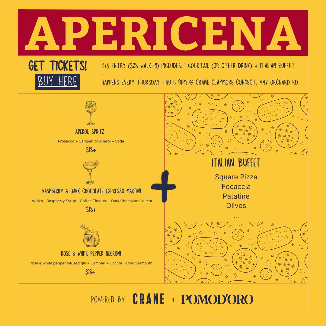 Is Thursday the new TGIF? Crane has just launched their new Apericena Italian Buffet “dinner” from just $25 that comes with unlimited eats like pizza, focaccia and snacks, plus your choice of cocktail, happening only on Thursdays!
