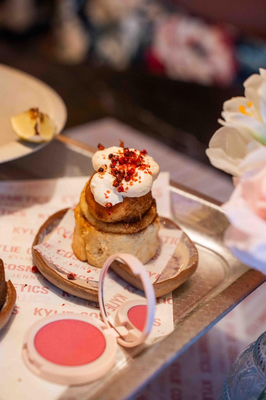 The pink-themed Kylie Café menu comes in a set, priced at $38++: you get 1 savoury dish, 2 dessert items and your choice of a mocktail or cocktail. The set menu includes a squid ink and smoked salmon dish, a matcha-raspberry cookie and a raspberry cinnamon roll. If you order the set menu, you also get a free surprise Kylie Cosmetics sample.
