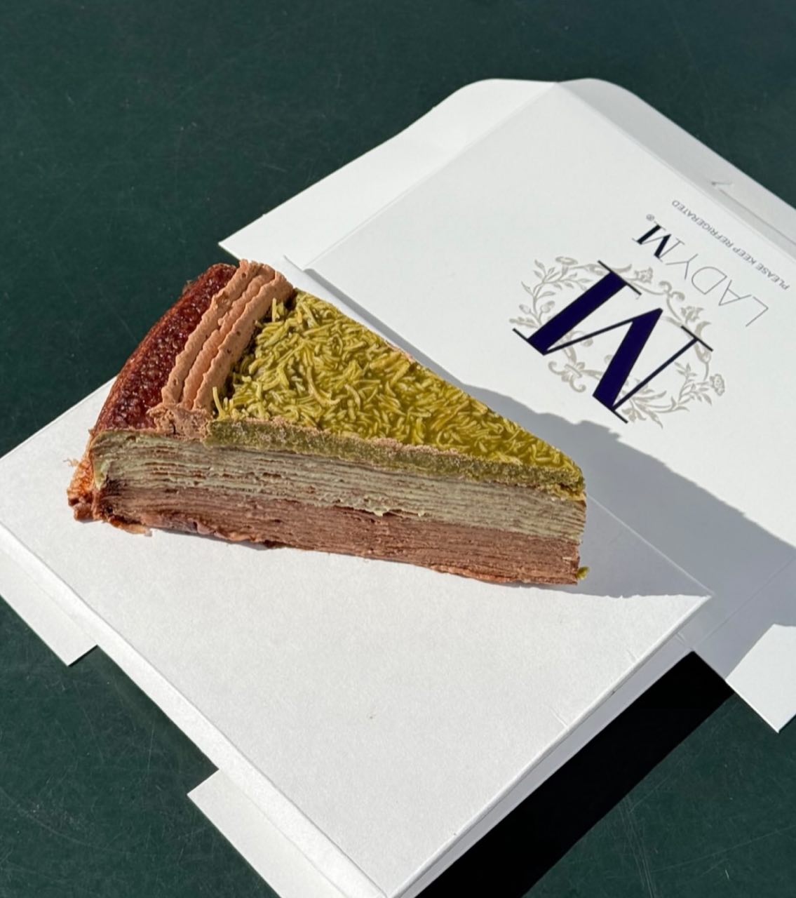 The Dubai Chocolate Mille Crêpe Cake is available at Lady M’s physical boutiques at $16 per slice, or $207.10 for the whole cake for in-store purchases. You can also pre-order your cake online at $198 each. Pre-orders for the cake are now available, with pick-ups from 5th May 2025 onwards.