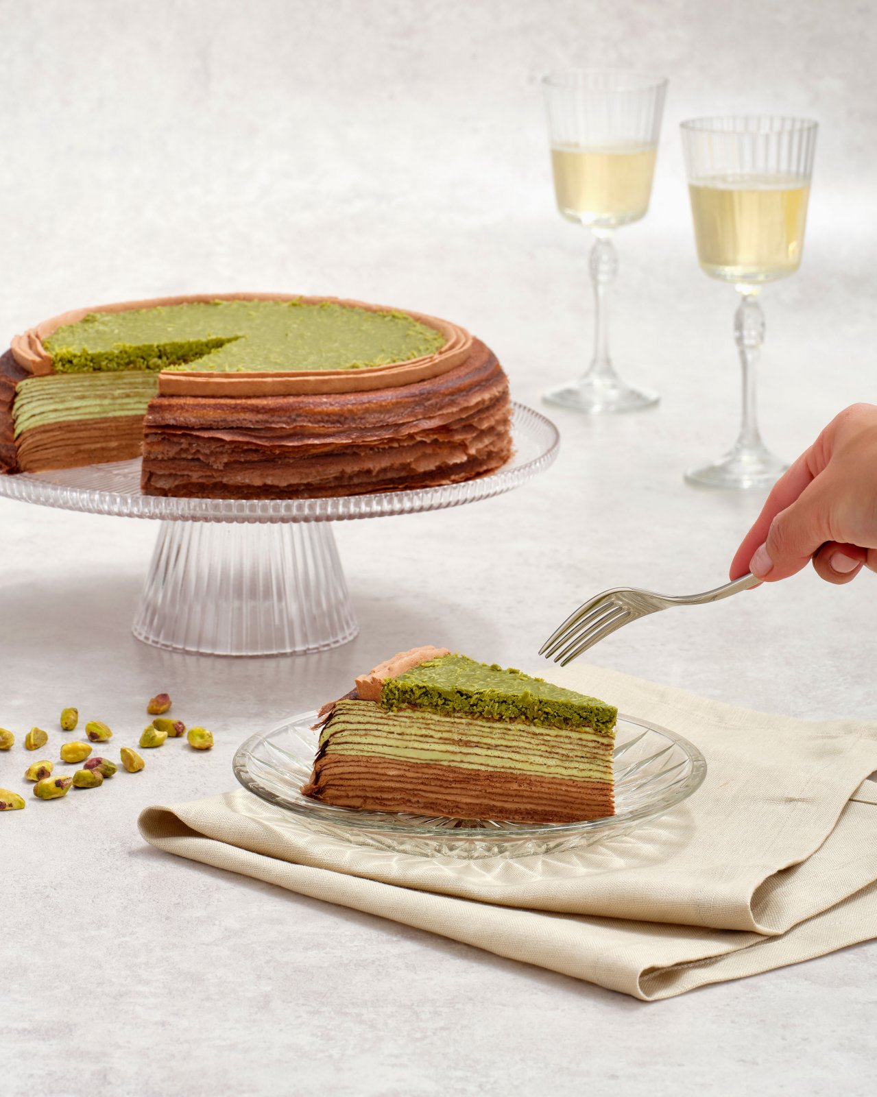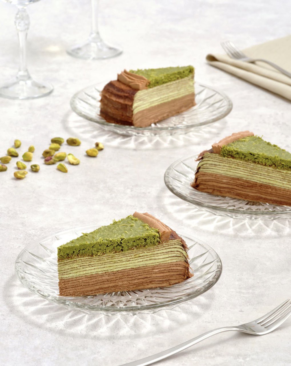 Lady M first launched their Dubai Chocolate Mille Crêpe Cake as a limited-time special in their US outlet, and now they’re finally available in Singapore, both in-stores and for pre-orders. The mille crêpe cake is inspired by the viral Dubai kunafa pistachio chocolate: made with handcrafted crêpe layers, topped with crispy pistachio kataifi crunch and decorated with a ring of chocolate cream.