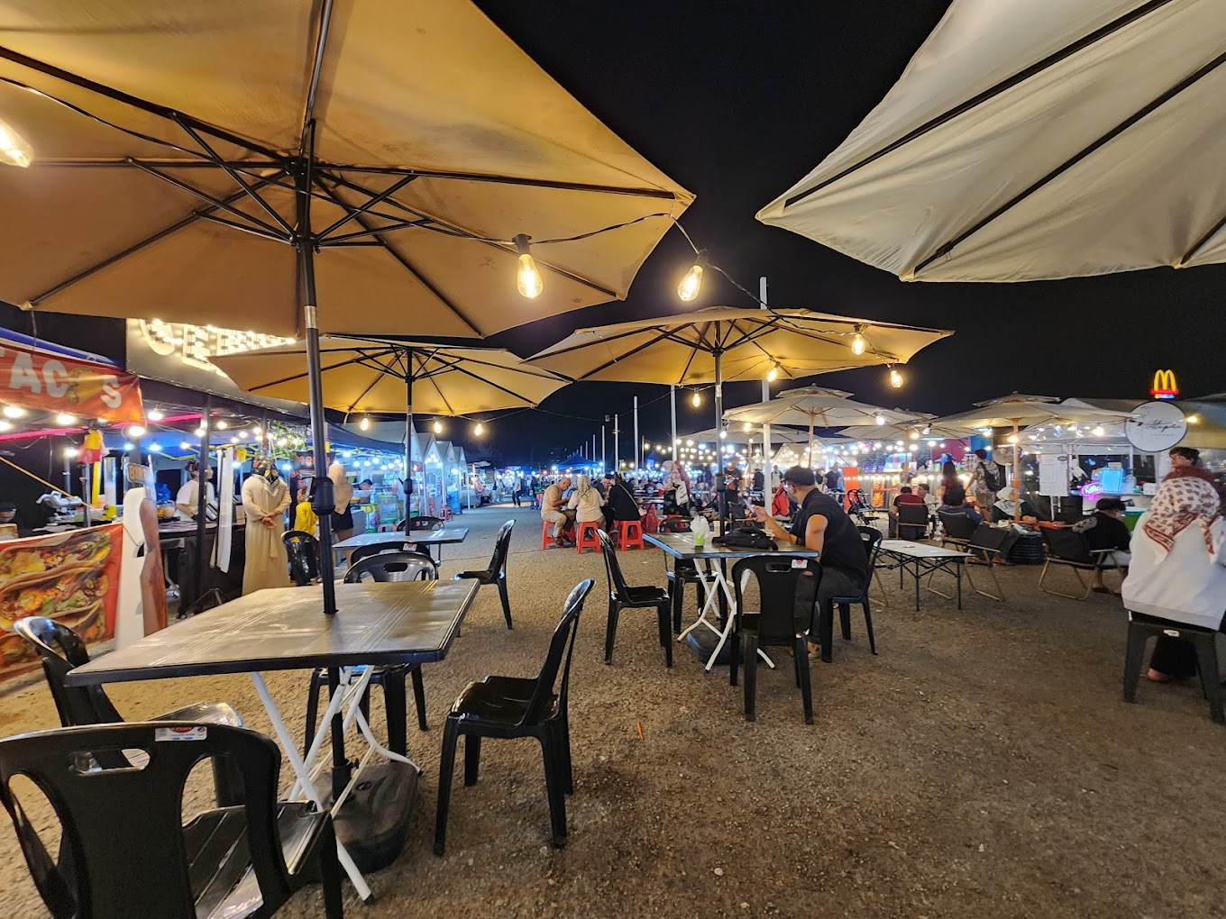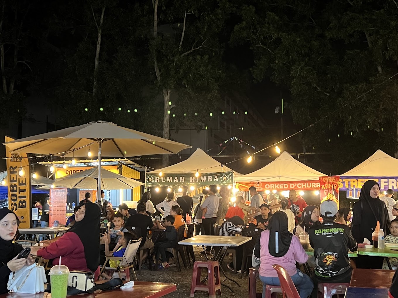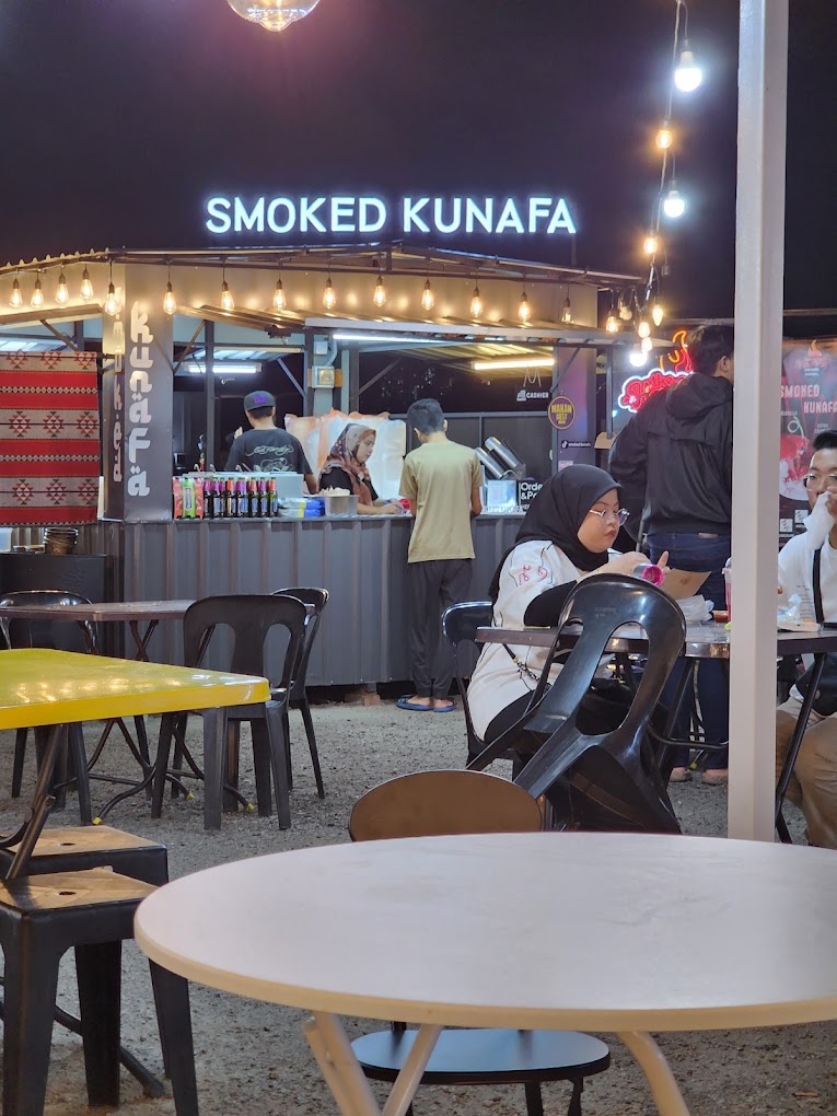 There’s numerous food trucks surrounding the seating area offering various unique and trendy street eats. Some food items you can get include smoked kunafa, birria tacos, bubble waffles with ice cream, saucy chicken tenders, lok lok skewers, fried durian fritters, baby Dutch pancakes, mango smoothies, chocolate-covered prata, fresh seafood, kebabs, pasta, loaded hotdogs, takoyaki, rojak, nasi goreng and much more.