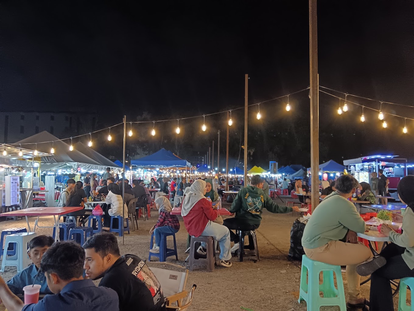 There’s string lights and lamps illuminating each table, making the whole place super vibey at night—almost like dining in an outdoor campsite! The food truck park opens at 6pm, all the way till 1am daily.