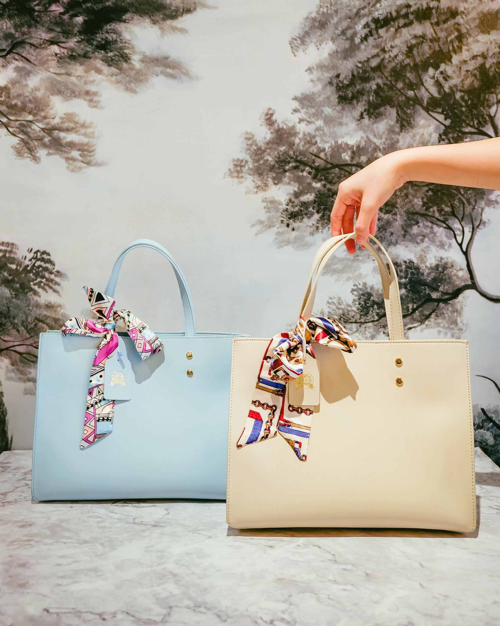 You may choose the colour of your preferred bag between blue and khaki. Each bag is perfectly functional and even comes with a twilly scarf to add on some wow factor and get you all ready to strut down Orchard Road.